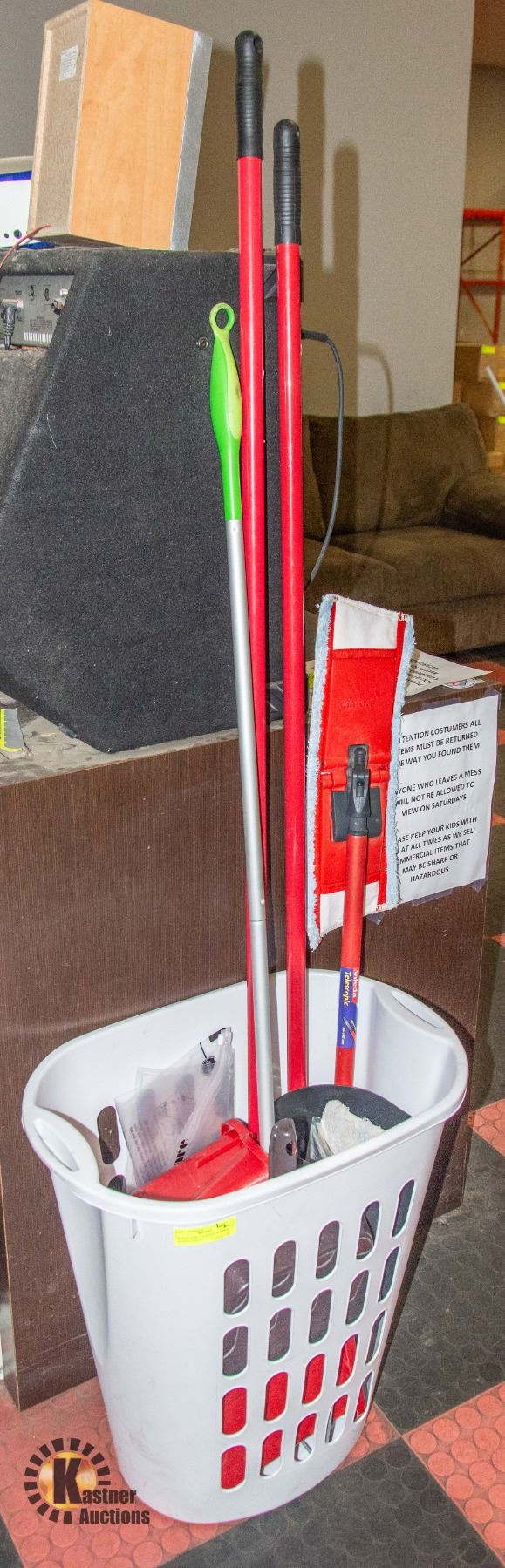 HOUSEHOLD CLEANING ACCESSORIES INCL. VILEDA PAIL, MOP, BROOM, VILEDA TELESCOPIC PAD WASHER WITH EXTRA PAD, SWIFFER, NEW MOISTURE GRABBER BAG, ETC. **ALL ITEMS MUST BE REMOVED BY 5PM SATURDAY, JULY 29TH 2023. ALL REMAINING ITEMS WILL BE SUBJECT TO A $6.00 PER DAY STORAGE CHARGE. ANY ITEMS REMAINING AFTER MONDAY, AUGUST 14TH, 2023 WILL BE CONSIDERED FORFEITED. NO REFUNDS WILL BE ISSUED FOR FORFEITED ITEMS. TO SCHEDULE A PICK UP APPOINTMENT CLICK HERE