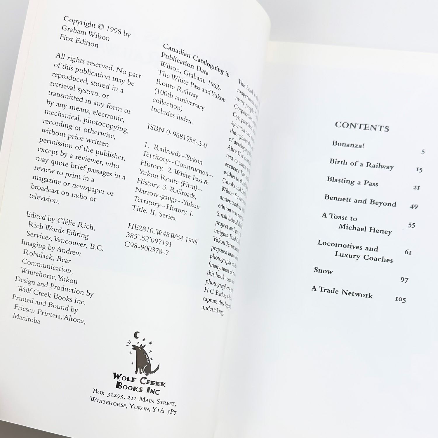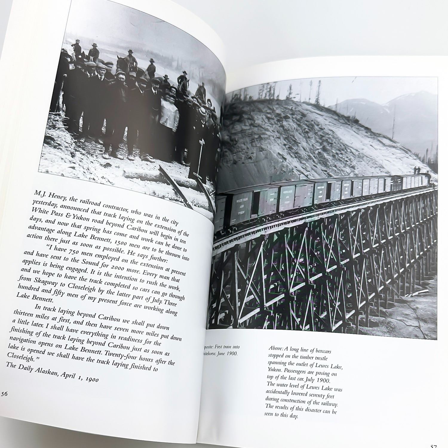 #8336 - 100TH ANNIVERSARY COLLECTION - CELEBRATING 100 YEARS - 1898-1998. RIDE THE “RAILWAY BUILT OF GOLD” AND STEP BACK IN TIME TO THE DAYS OF THE KLONDIKE GOLD RUSH. LINKING SKAGWAY, ALASKA WITH WHITEHORSE, YUKON - FROM THE CONSTRUCTION TO OPERATION OF THE RAILROAD. MORE THAN 125 PHOTOGRAPHS. SOFTCOVER RAILROAD HISTORY BOOK - ©1998 BY GRAHAM WILSON (FIRST EDITION) - 112 PAGES.