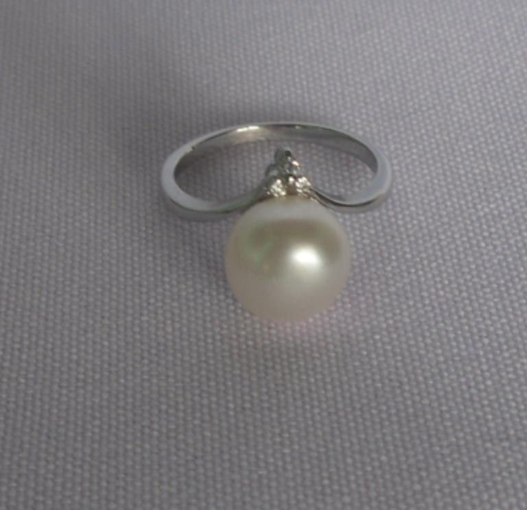 WHITE PEARL 3-STONE CZ RING; AUTHENTIC PHILIPPINE PEARL **|**|** WHITE PEARL 3-STONE CZ RING; AUTHENTIC PHILIPPINE PEARL; METAL-SILVER; SIZE-6.5 ; MSRP: $300