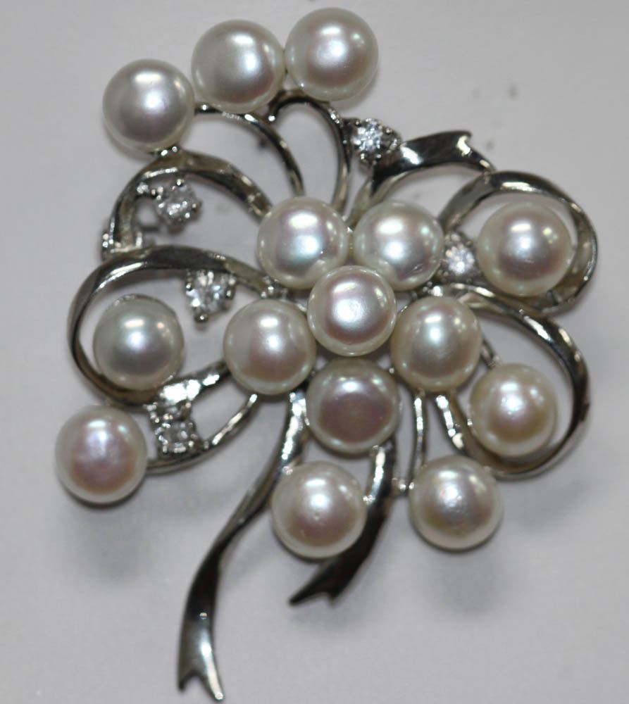 WHITE PEARL AND CZ BROOCH **|**|** WHITE PEARL AND CZ BROOCH