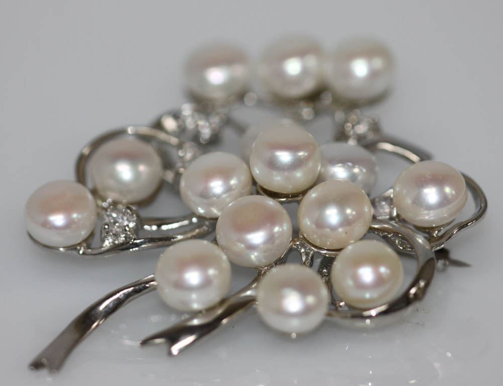 WHITE PEARL AND CZ BROOCH **|**|** WHITE PEARL AND CZ BROOCH
