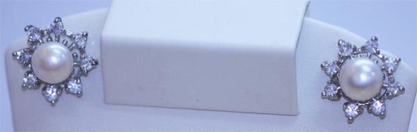 WHITE PEARL AND CZ EARRING **|**|** WHITE PEARL AND CZ EARRING ; MSRP: $100