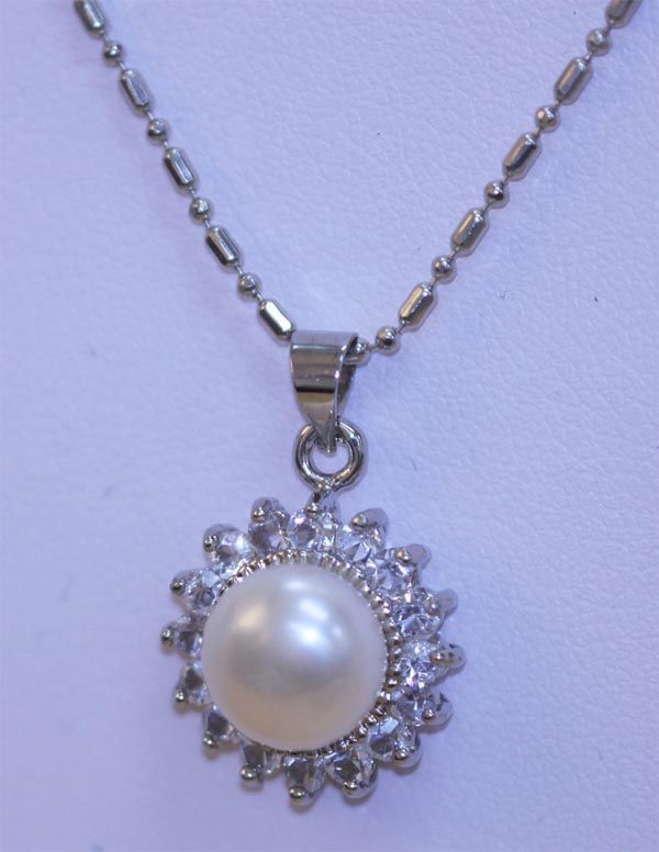 WHITE PEARL AND CZ NECKLACE **|**|** WHITE PEARL AND CZ NECKLACE ; MSRP: $100