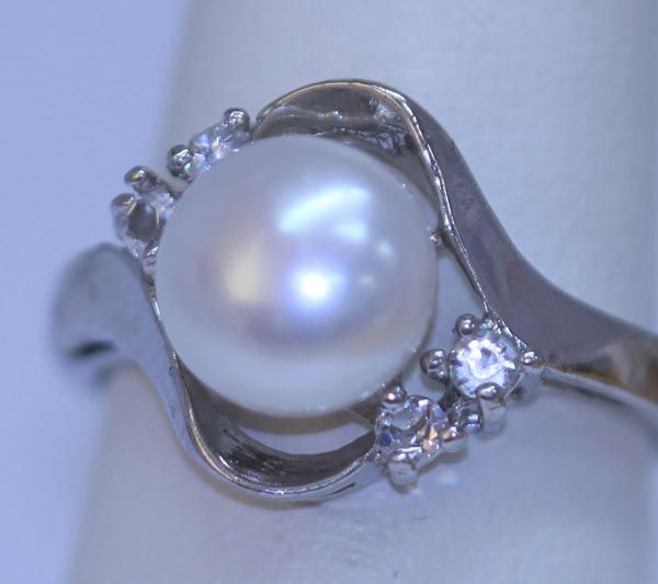 WHITE PEARL AND CZ RING **|**|** WHITE PEARL AND CZ RING ; MSRP: $100
