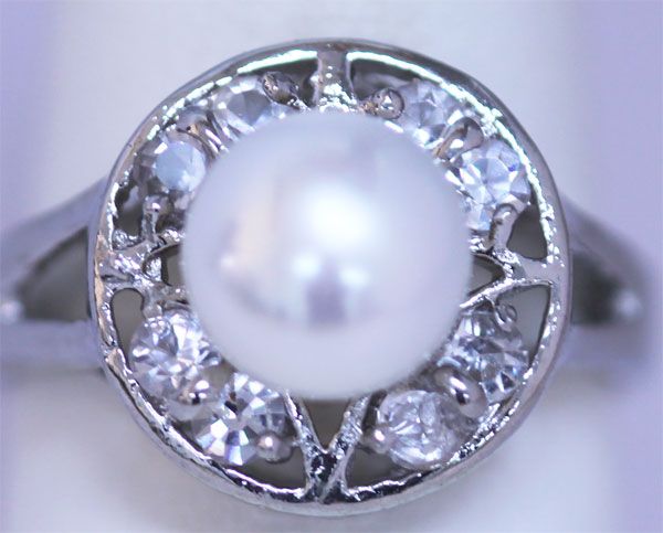 WHITE PEARL AND CZ RING **|**|** WHITE PEARL AND CZ RING ; MSRP: $200