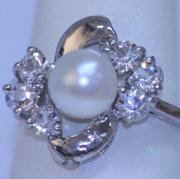 WHITE PEARL AND CZ RING **|**|** WHITE PEARL AND CZ RING ; MSRP: $100