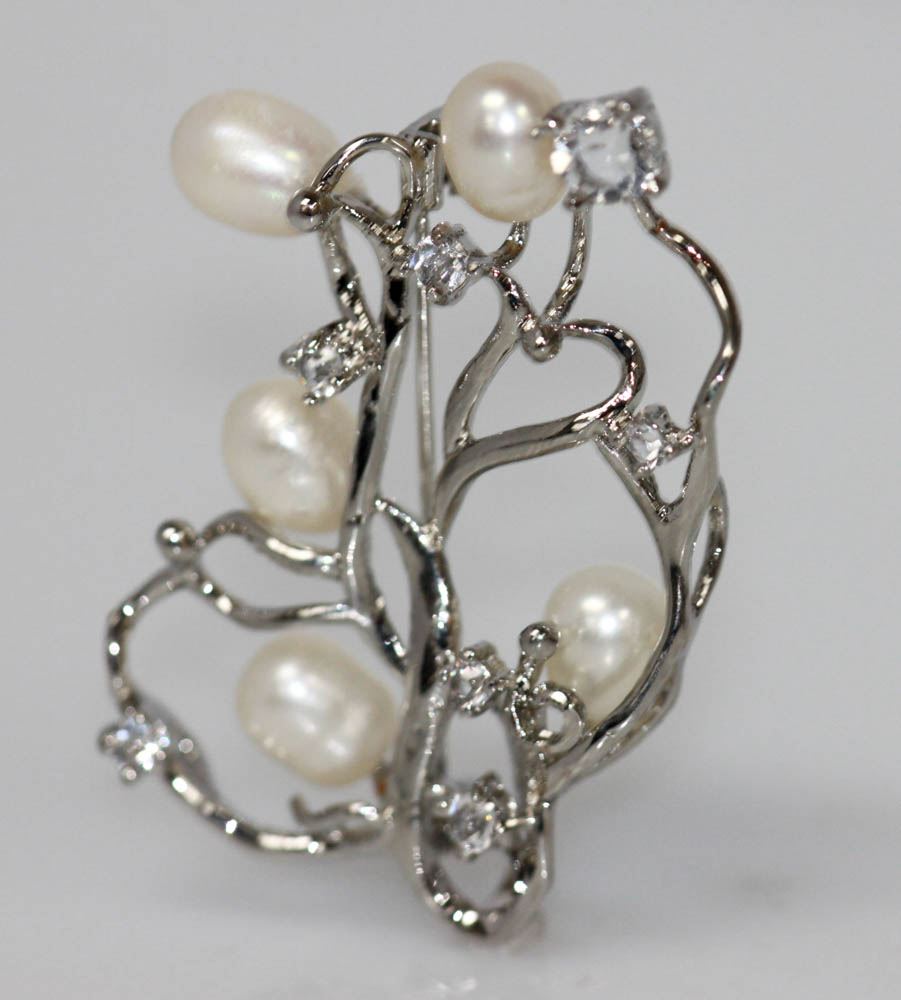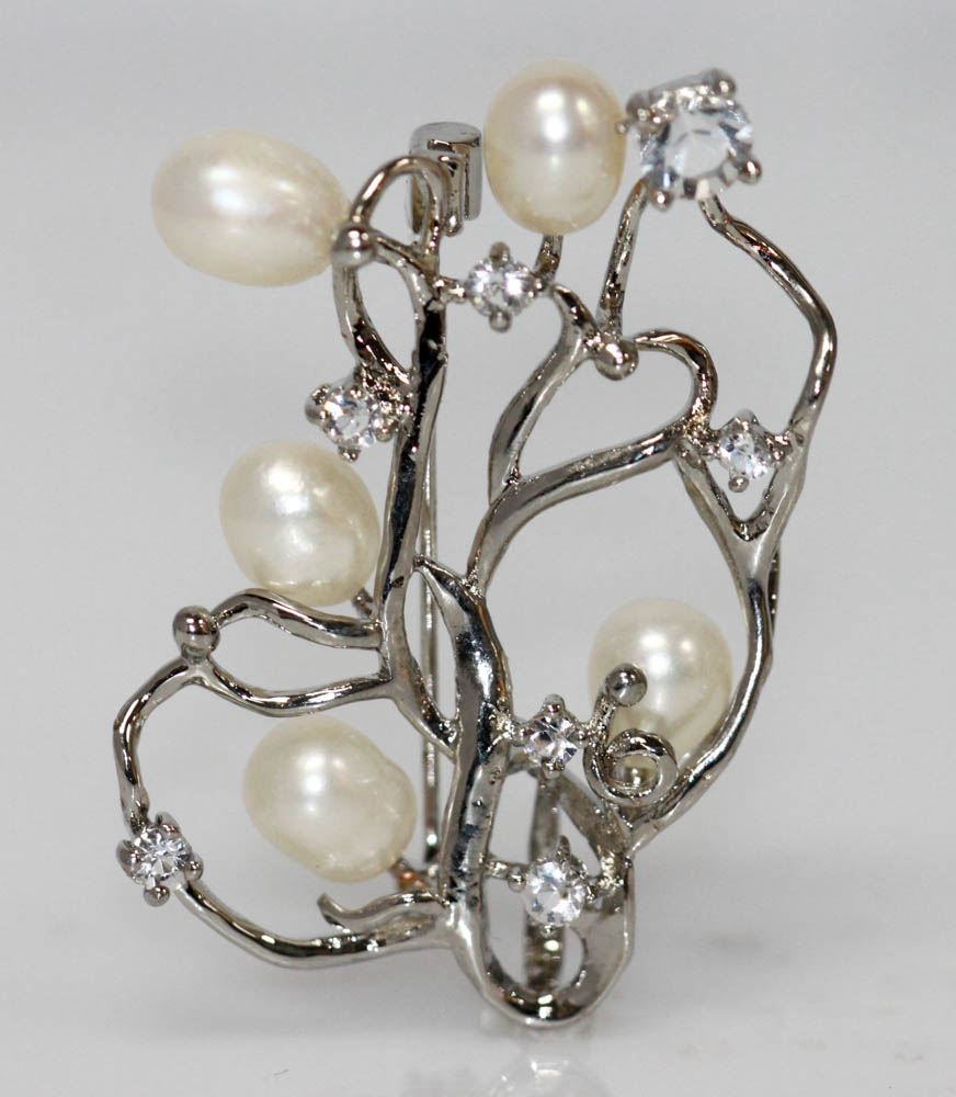 WHITE PEARL CZ BROOCH .925 STERLING SILVER **|**|** WHITE PEARL CZ BROOCH .925 STERLING SILVER