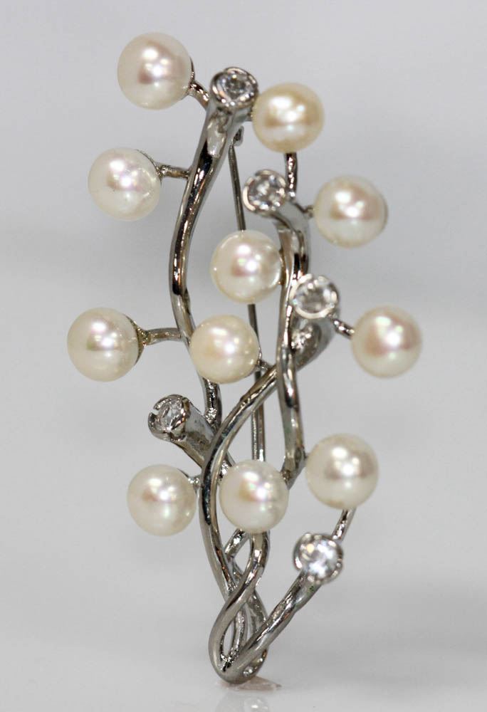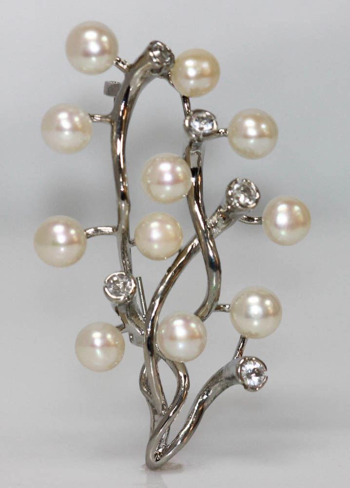 WHITE PEARL CZ BROOCH TREE BRANCH STYLE .925 STERLING S **|**|** WHITE PEARL CZ BROOCH BRANCH STYLE .925 STERLING SILVER