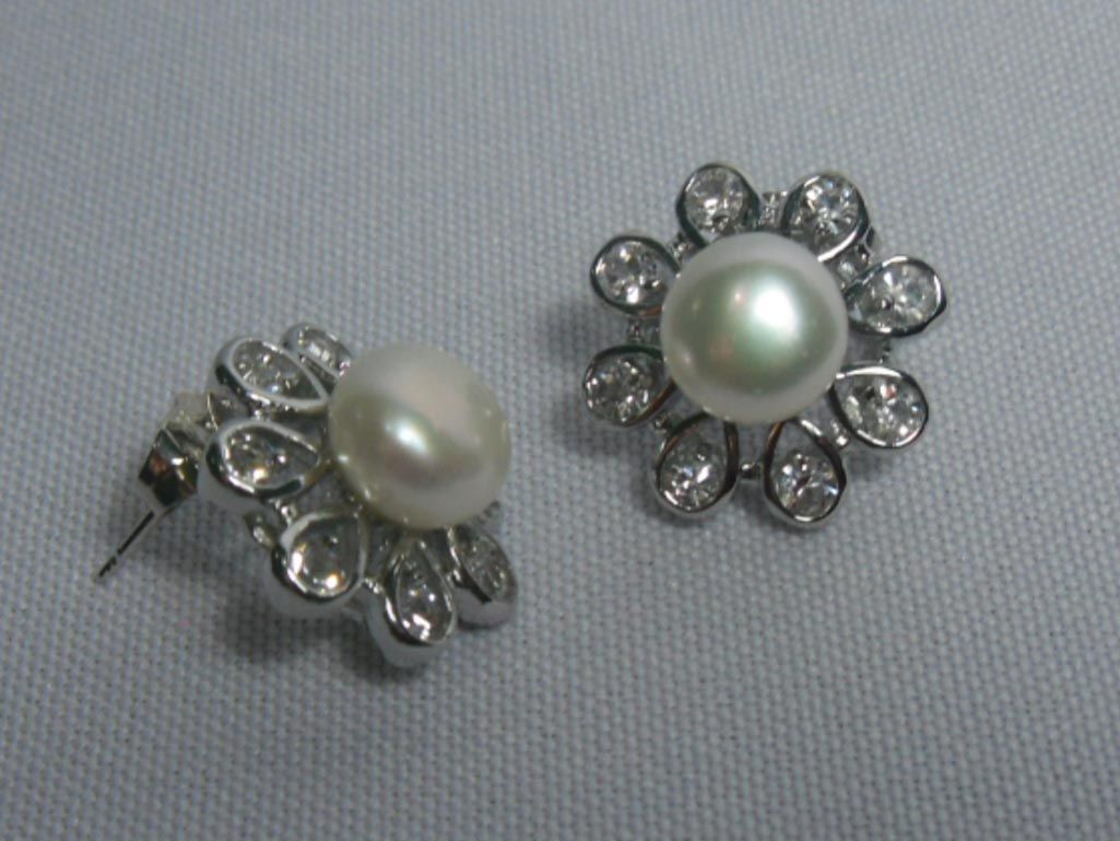 WHITE PEARL FLOWER CZ EARRINGS; **|**|** WHITE PEARL FLOWER CZ EARRINGS; ; MSRP: $300