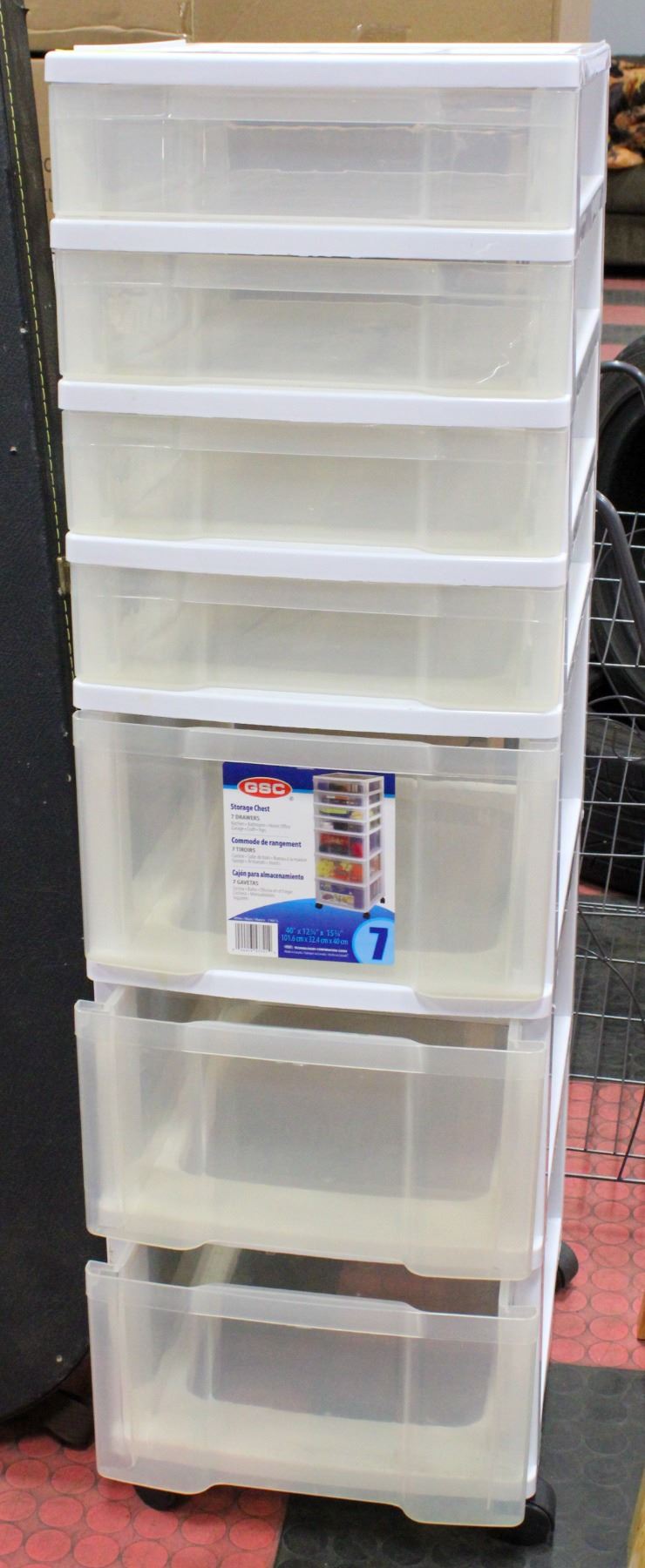 WHITE PLASTIC 7 DRAWER STORAGE ON WHEELS