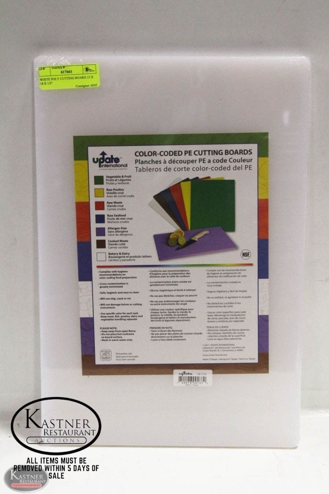 NEW UPDATE INTERNATIONAL CB-1218, 12 X 18 X 1/2" WHITE (FOR BAKERY & DAIRY), DURABLE NON-POROUS HIGH-DENSITY SURFACE, POLYETHYLENE CONSTRUCTION, NSF APPROVED**ALL ITEMS MUST BE REMOVED BY 5PM MONDAY, FEBRUARY 6TH, 2023. ALL REMAINING ITEMS WILL BE SUBJECT TO A $6.00 PER DAY STORAGE CHARGE. ANY ITEMS REMAINING AFTER MONDAY, FEBRUARY 20TH, 2023 WILL BE CONSIDERED FORFEITED. NO REFUNDS WILL BE ISSUED FOR FORFEITED ITEMS.** TO SCHEDULE A PICK UP APPOINTMENT CLICK HERE