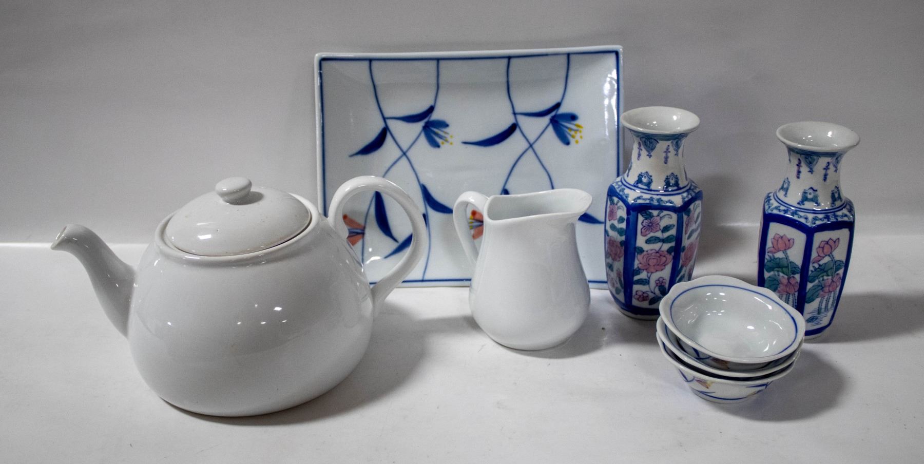 WHITE PORCELAIN TEAPOT, MINI CREAM JUG,