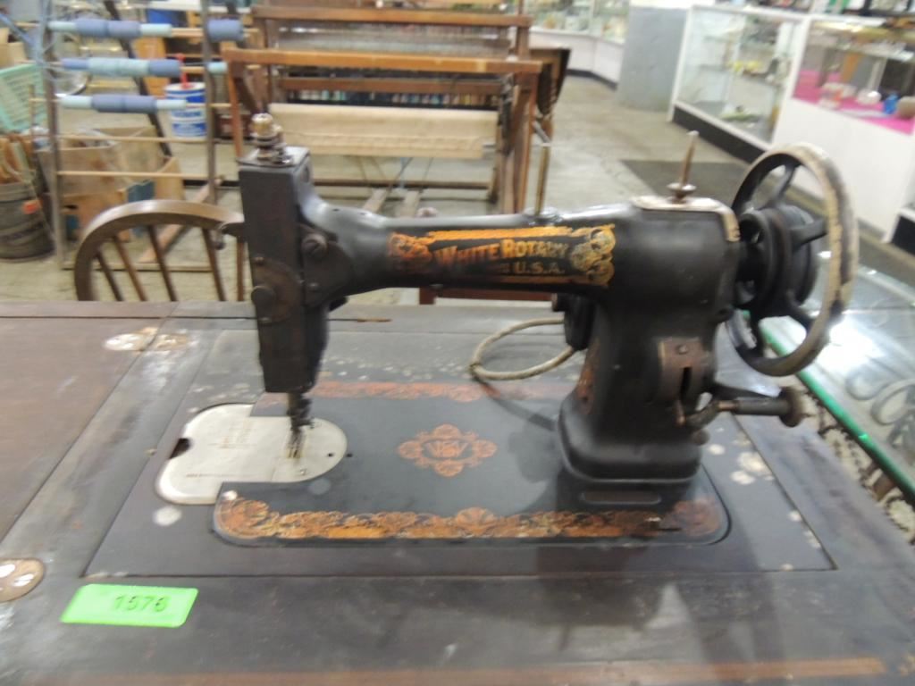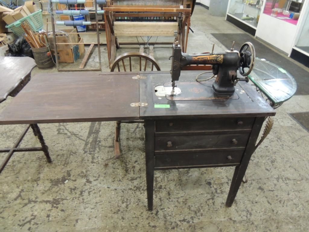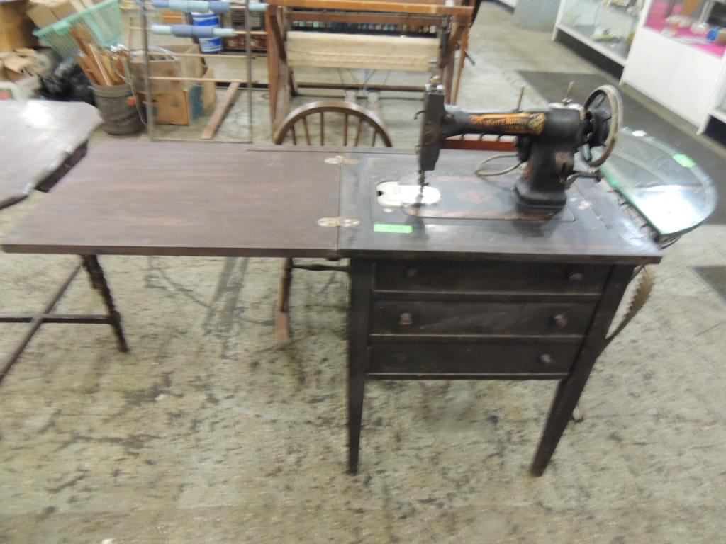 ANTIQUE SEWING MACHINE AND SEWING TABLE GOOD CONDITION AS SHOWN SEE PHOTO FOR MORE DETAIL