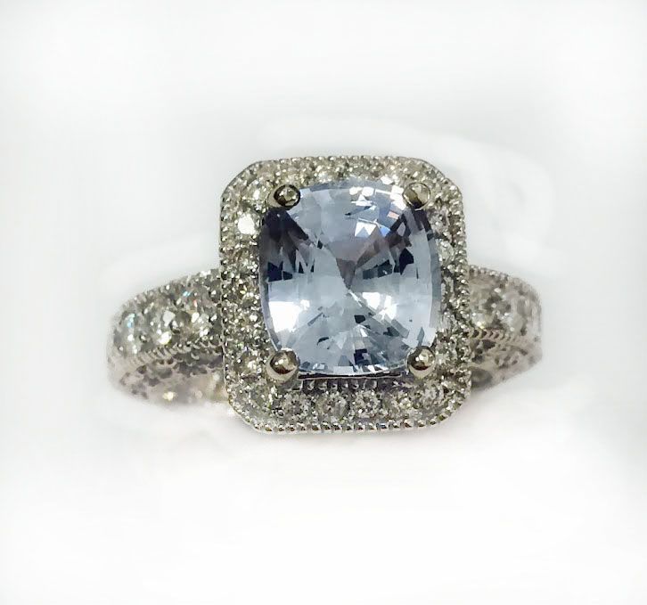 WHITE SAPPHIRE 3.18CT, 14K W/G RING 7.01GRAM / DIAMOND RD 1.50CT