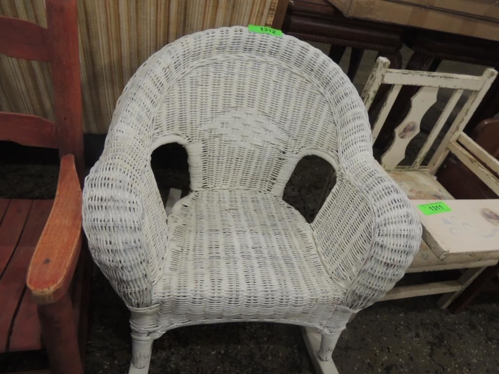 PATIO CHAIR, DECROATIVE WHITE WICKER ARM CHAIR, CHILDRENS CHAIR, BEDROOM CHAIR, DECORATIVE CHAIR AS SHOWN SEE PHOTO FOR MORE DETAILS.