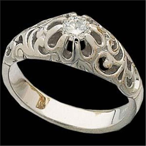 Antique Style 14k White Gold Filigree ring featuring a beautiful round Diamond = .25 CARATS! This Diamond is very White 'H' Color and Very Bright 'SI' Clarity with lots and lots of sparkle! This ring can also be worn as an 'Antique Style Diamond Engagement Ring'. It is a size 6 and I can easily resize it for you.