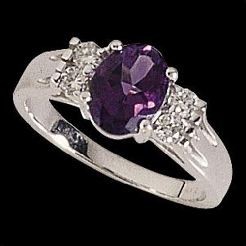 14k White Gold ring featuring a gorgeous Oval AMETHYST. The Amethyst measures 8x6mm and weighs 1.50 Carats! There are 2 Diamonds set each side as accent to the Amethyst. This beautiful ring is a size 6 and I can easily resize it for you.