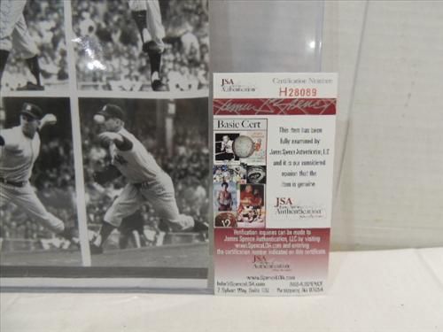 WHITEY FORD AUTOGRAPH ON SERIES OF FOUR BASEBALL PHOTOS COA. INCLUDES COA FROM JSA #H 28089. AS SHOWN. VIEW PICTURE FOR DETAIL.