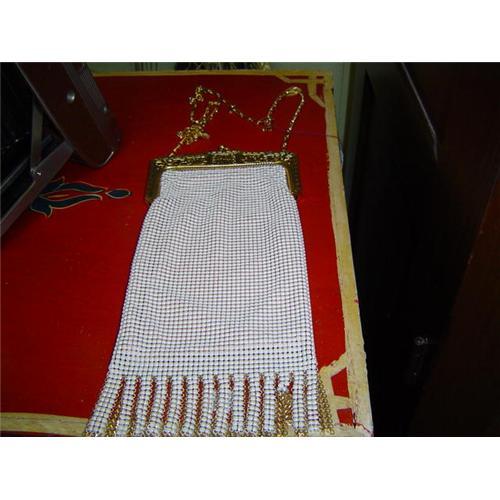 <table width="100%" border="0" cellspacing="0" cellpadding="4"><tr><td><em> </em></td></tr><tr> <td width="100%"> Whiting and Davis white mesh on gold, gold clasp and long gold chain. Not sure what degree of gold it is. The purse is really nice! In excellent condition! </td></tr><tr> <td> </td></tr><tr> <td>Reference #: C27</td></tr><tr><td>Condition:excellent</td></tr><tr><td>Year:unknown</td></tr><tr><td>Country:USA</td></tr><tr><td>Maker:Whiting & Davis</td></tr><tr><td>Height:4.50</td></tr><tr><td>Width:9.50</td></tr><tr><td>Weight:.50</td></tr><tr><td>Title:WHITING AND DAVIS MESH PURSE</td></tr><tr><td>Style:metal mesh</td></tr><tr><td>Materials:metal</td></tr><tr><td>Type:MESH</td></tr><tr><td>Location:Wilmington, NC USA</td></tr></table>