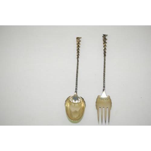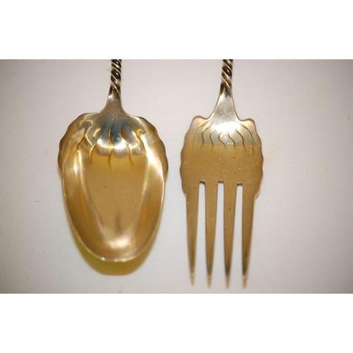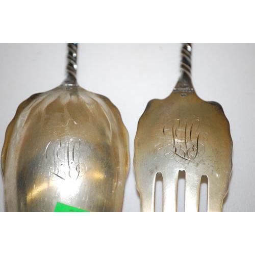 WHITING STERLING SALAD SET: FORK & SPOON TWISTED PATTERN, MONOGRAMMED ON BACK (6 TROY OZ.) - WEAR, IMPERFECTIONS