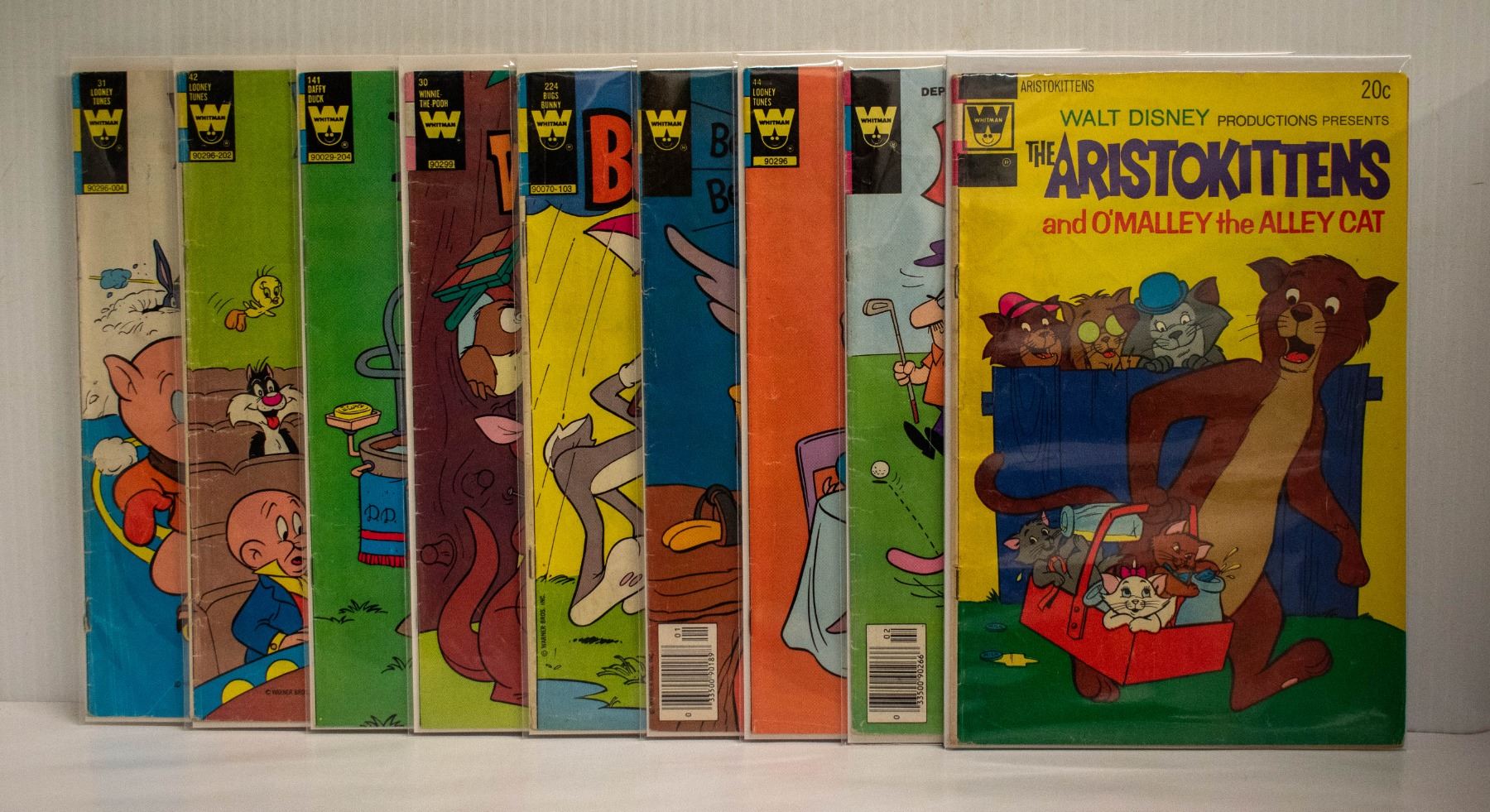 ARISTOKITTENS #3, PINK PANTHER #73, LOONEY TUNES #44, ROAD RUNNER #87, BUGS BUNNY #224, WINNIE THE POOH #30 AND DAFFY DUCK #141, LOONEY TUNES #42, LOONEY TUNES #31; COVER PRICES STARTING AT 20 CENTS