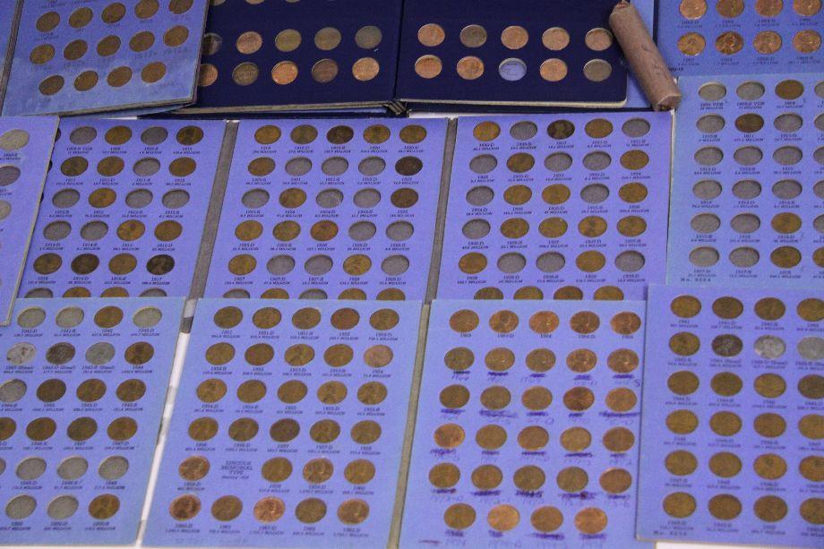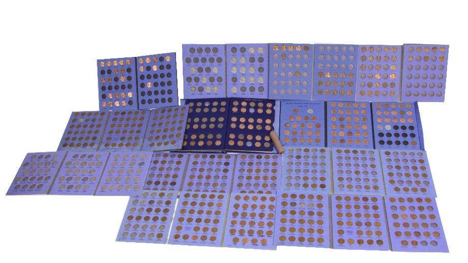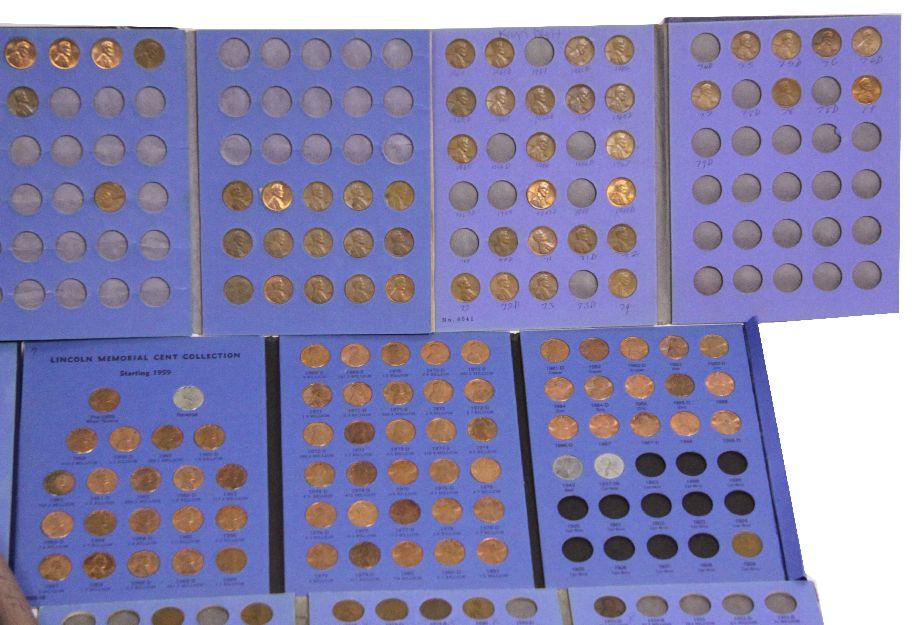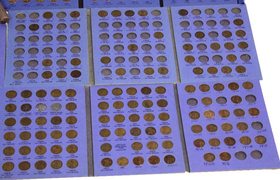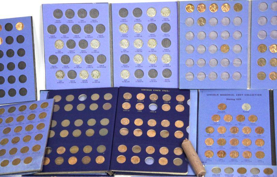 One coin book of Jefferson Nickels 1938-1961 $2.50 face value, one Buffalo Nickel book $4.50 in face value with coins from 1919-1937. Hundreds of Lincoln Head Pennies, 10 books spanning 1942-1993 face value of $5.43. Total face value is 12.43. Also included is 1929P circulated roll of pennies. All are from circulation.