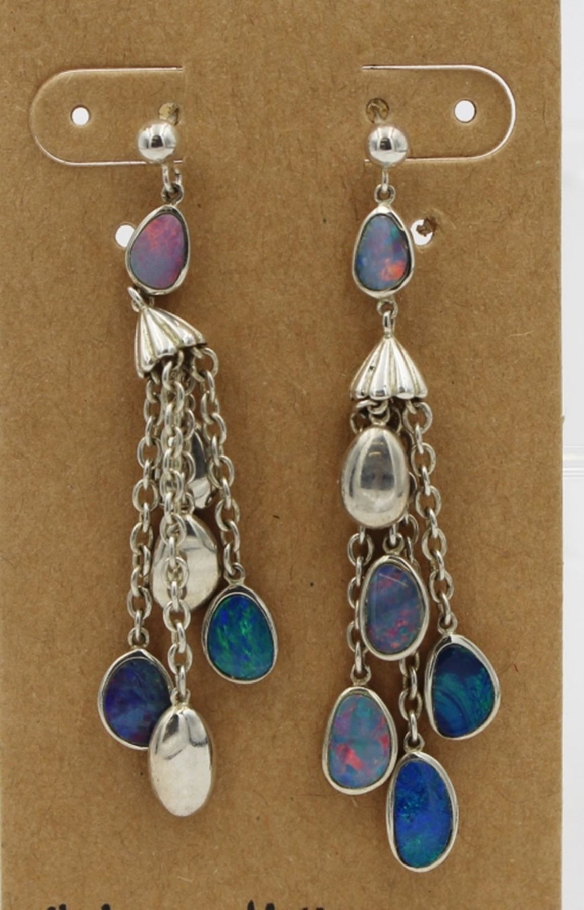 WHITNEY KELLY DANGLY OPAL EARRINGS. BEAUTIFUL BLUE AND PURPLE HUES. 9.5 GRAMS TOTAL PRE-OWNED. ESTIMATE: $60-$80