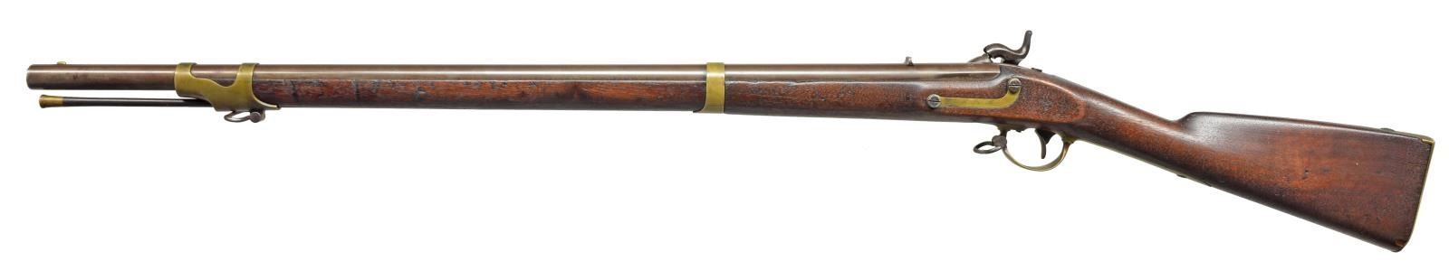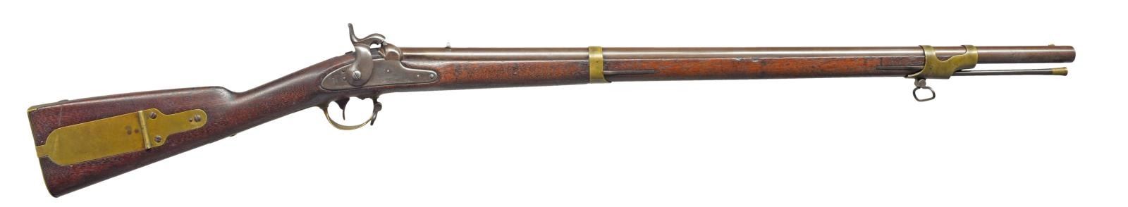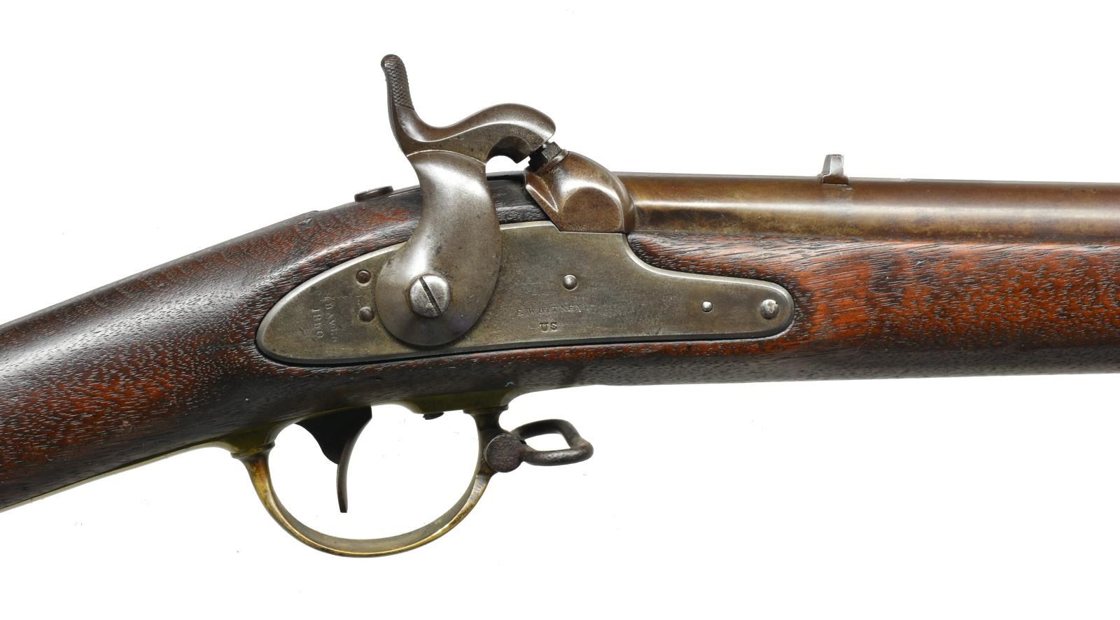 Cal. 54. NSN. Bbl. 33". Brass mounted standard configuration of the popular “Mississippi” rifle that saw much service in this Civil War, both North & South. “E. WHITNEY / US” on lock forward of hammer & “N. HAVEN / 1850” vertically on tail. Bbl. marked at breech “US / GW / VP”, “1851” stamped on tang. CONDITION: good to very good overall. Bbl. & lock overall cleaned gray/brown patina, brass has light mustard patina. Stock is well fit w/ rounded edges. Two inspector cartouches can be seen in outline only. Mechanics fine w/ bright, crisp bore. PROVENANCE: The Estate Collection of Gary Parietti. (01-19285/JS). ANTIQUE. $1,200-1,800.
