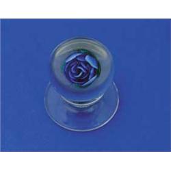 Lot 38 WHITTEMORE PEDESTAL PAPERWEIGHT. Blue crimped rose with a yellow signature cane and applied clear foot. SIZE: 3” t. CONDITION: Very good to excellent. 5-69103 (200-400)