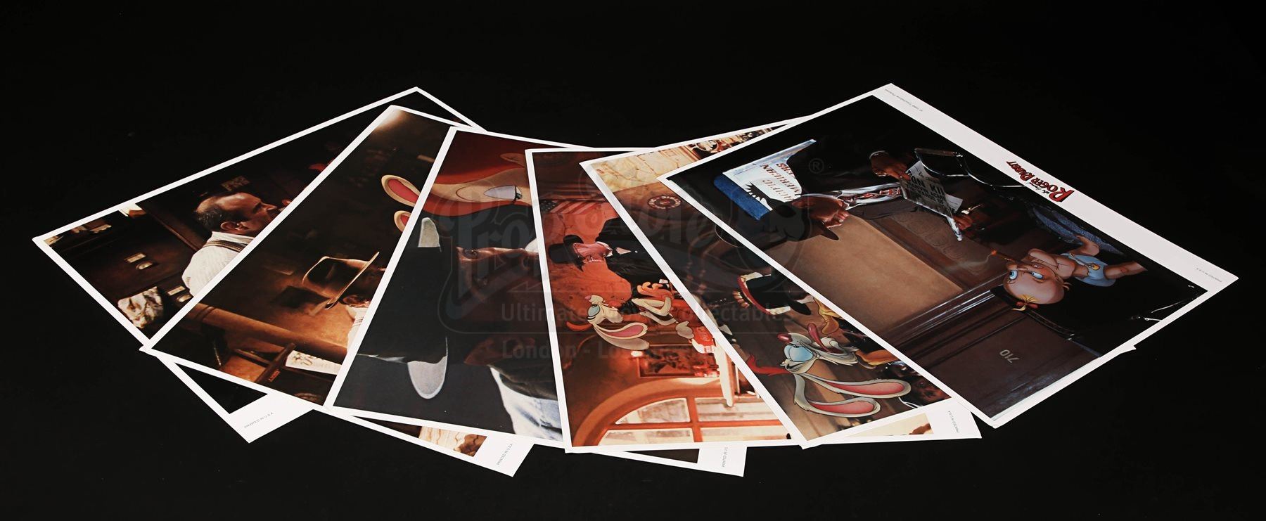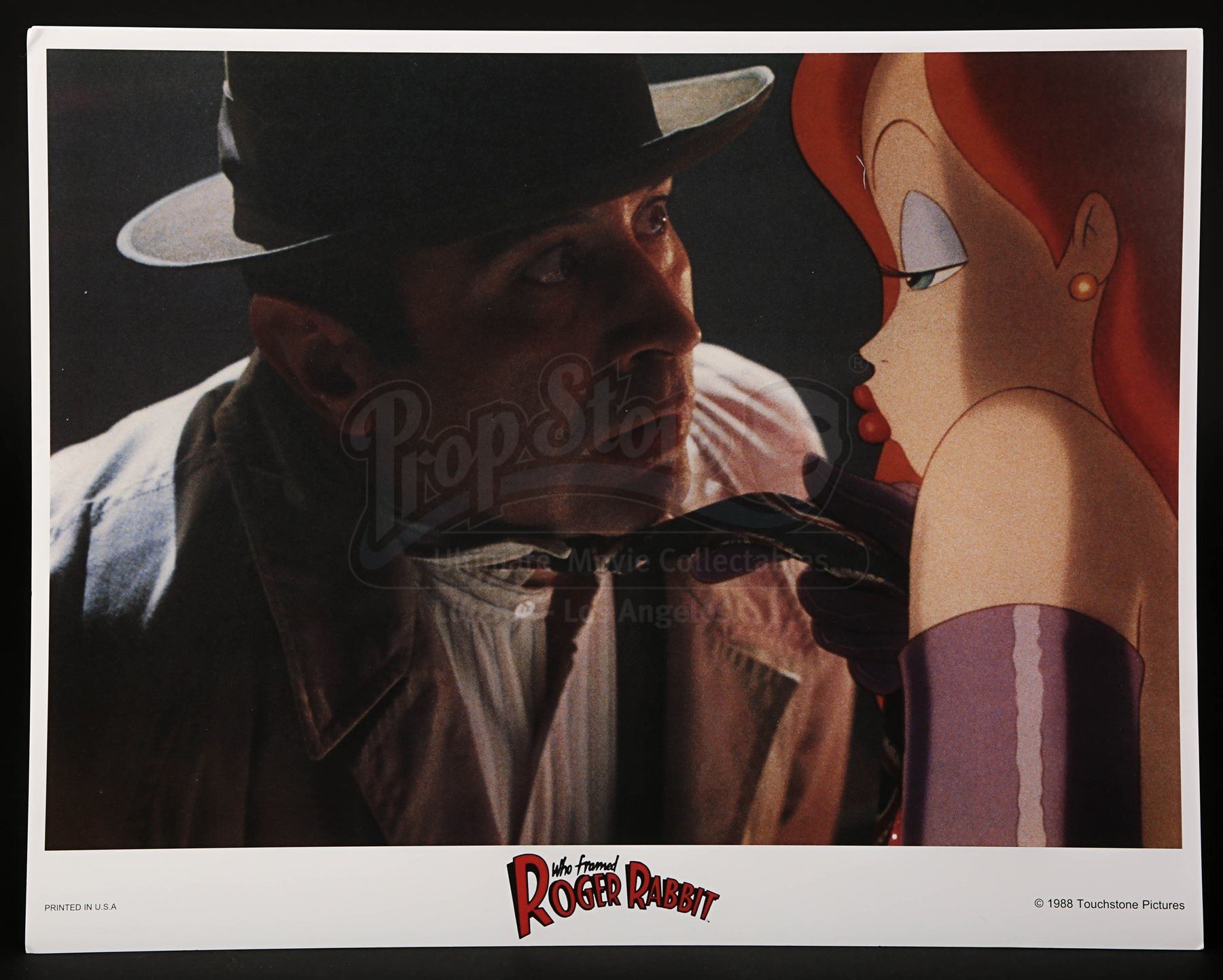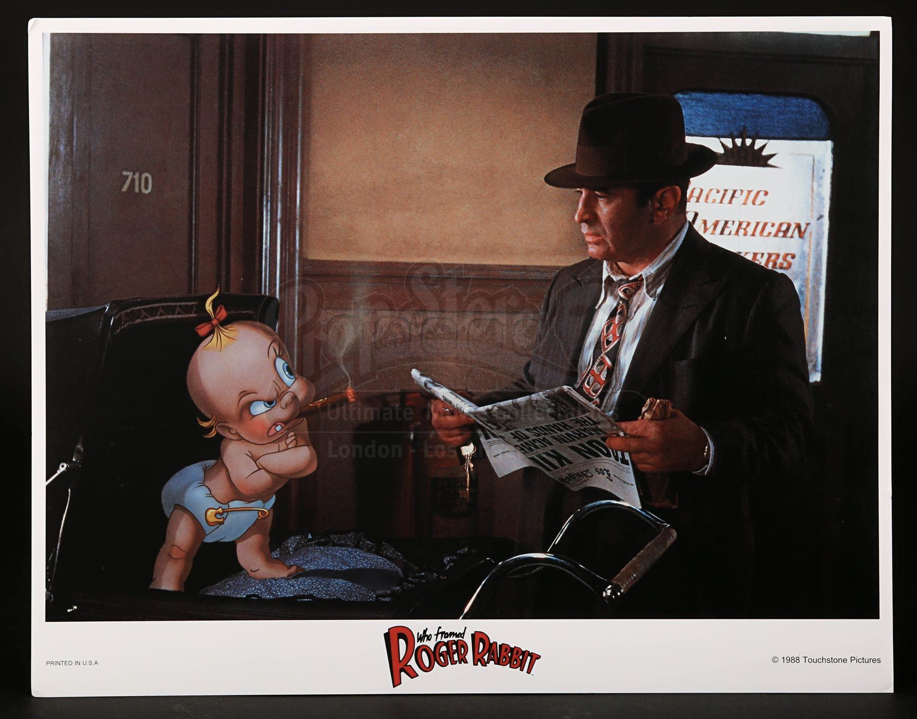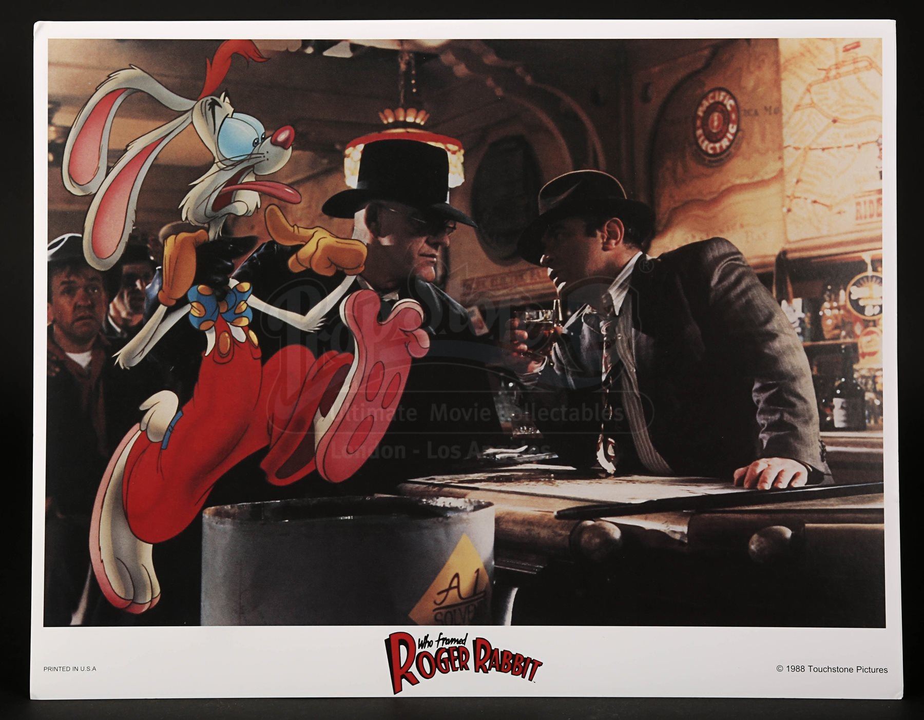 The cel was originally purchased in the 1989 Sotheby's auction "The Art of Who Framed Roger Rabbit", and is accompanied by a copy of the auction catalogue and a letter of authenticity from Walt Disney Studios. A set of six lobby cards accompany the lot, with one featuring the exact same image. The frame shows minor scratches and wear from storage. Dimensions: 3 cm x 65.5 cm x 50 cm (1 ¼” x 25 ¾” x 19 ¾”)