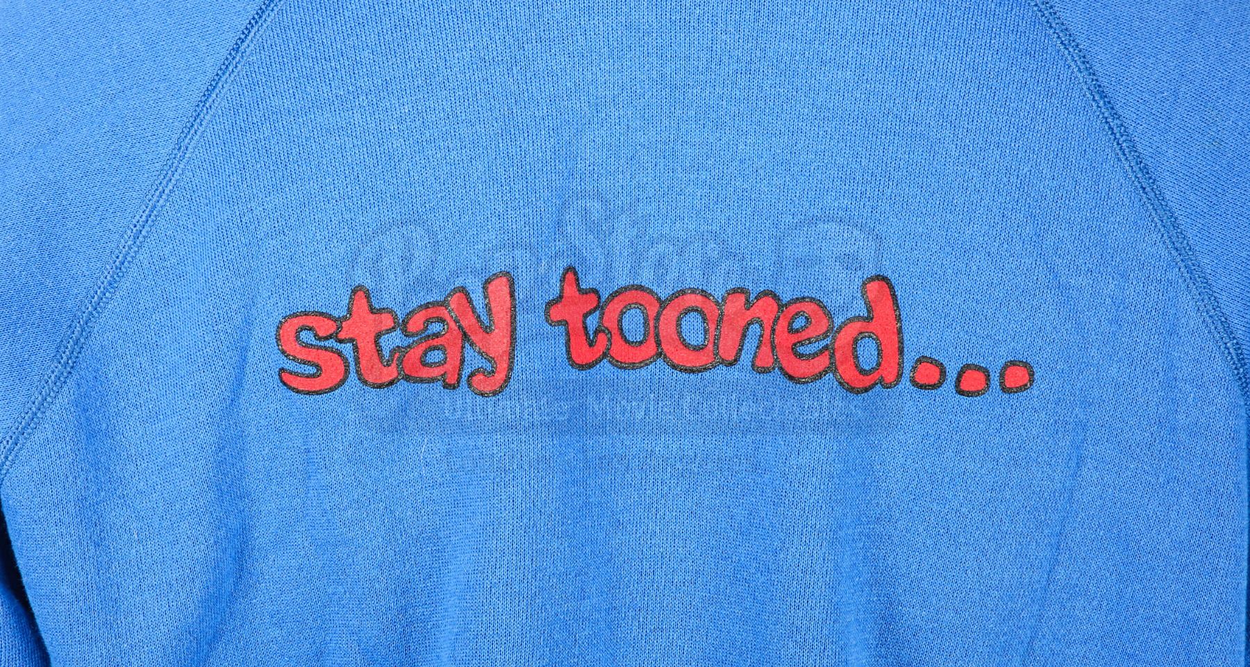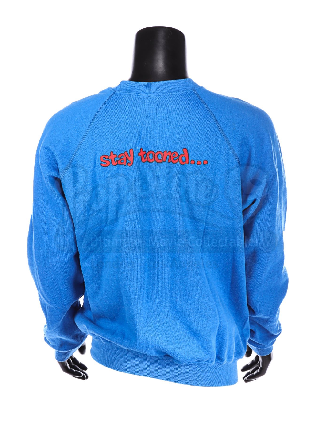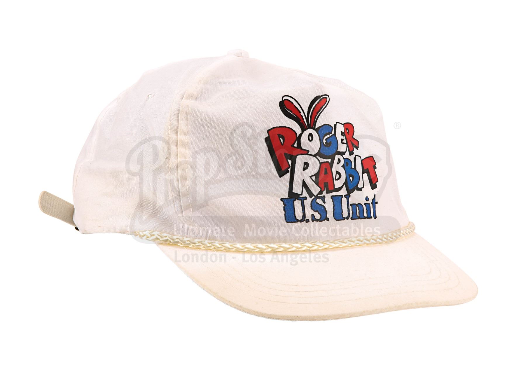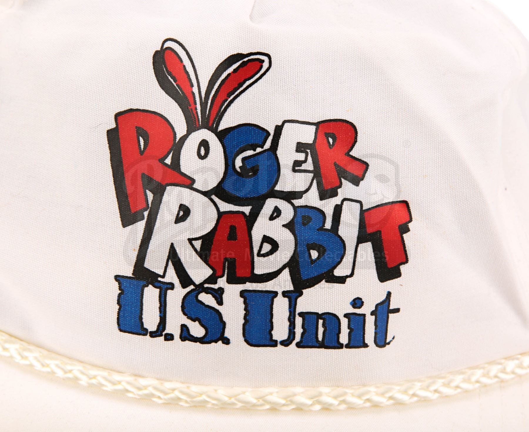 The three hard-back mounted posters depict film reel in the shape of Roger Rabbit and scenes from the film. The cap is made of white cotton, with a metal adjuster and "Roger Rabbit U.S. Unit" on the front. The three crew sweatshirts (sizes L and XL) are blue cotton and feature the film title in red on the front and "stay tooned€¦" on the back. The items show minor wear, the posters show water damage and various markings and the cap fabric has discoloured with age. Dimensions (Largest poster): 106 cm x 73 cm (45 1/2" x 28 3/4")