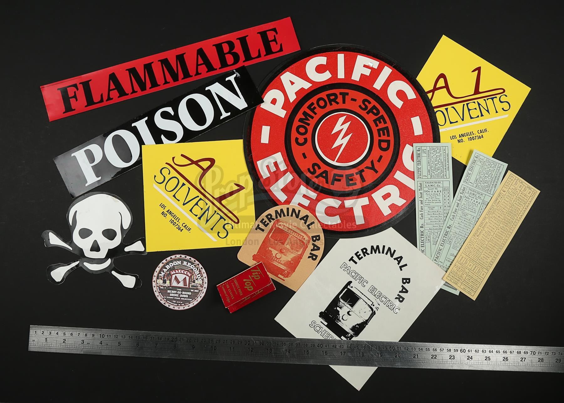 A set of props and labels from Robert Zemeckis' Oscar-winning detective comedy Who Framed Roger Rabbit. Custom-made props dressed the Terminal Station Bar where Judge Doom (Christopher Lloyd) almost dunks Roger Rabbit into Dip - a toon-killing substance used by the villain throughout the film.