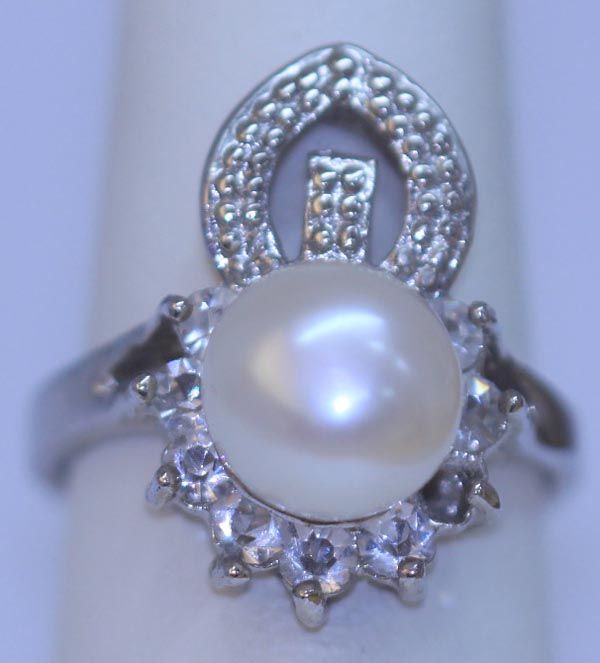 WHTE PEARL AND CZ RING **|**|** WHTE PEARL AND CZ RING ; MSRP: $100