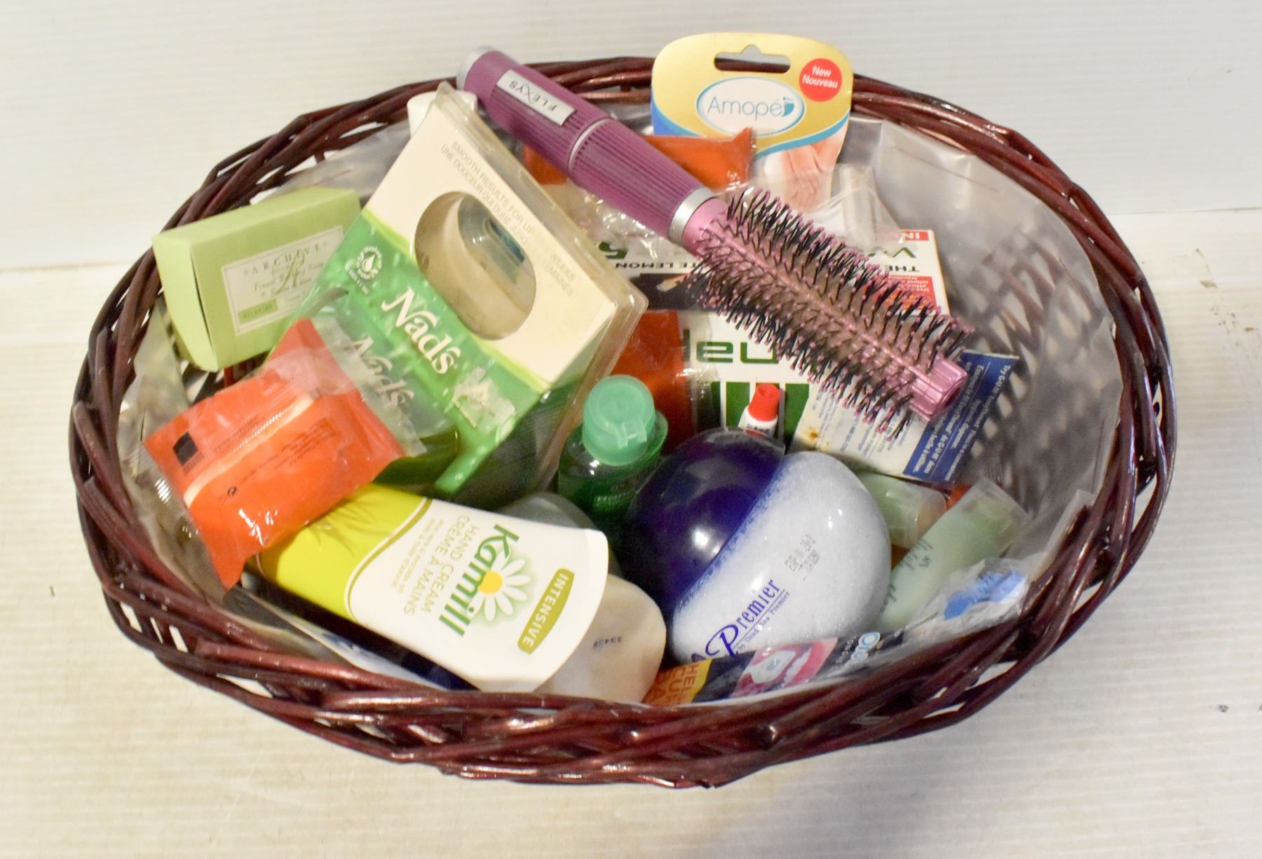 WICKER BASKET OF BEAUTY + BATH PRODUCTS