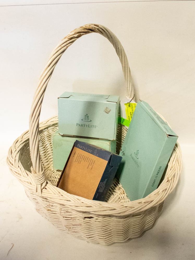 WICKER BASKET WITH PARTYLITE CANDLES