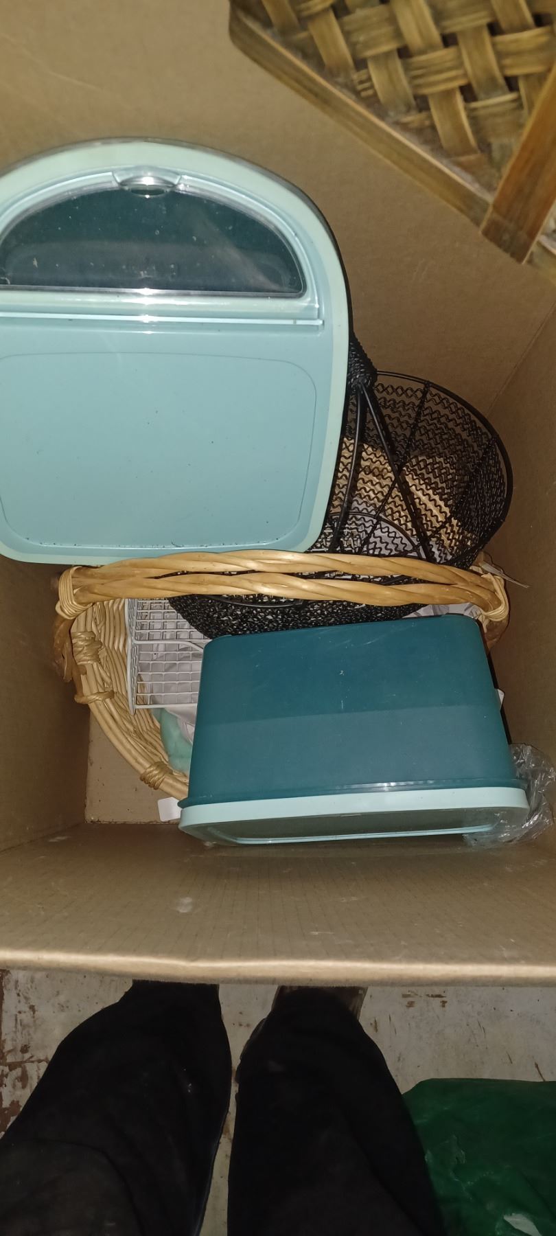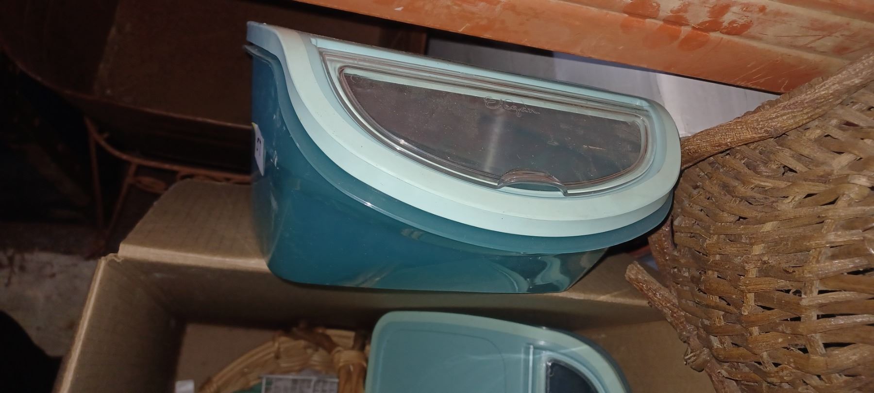 WICKER BASKETS AND PLASTIC STORAGE CONTAINERS