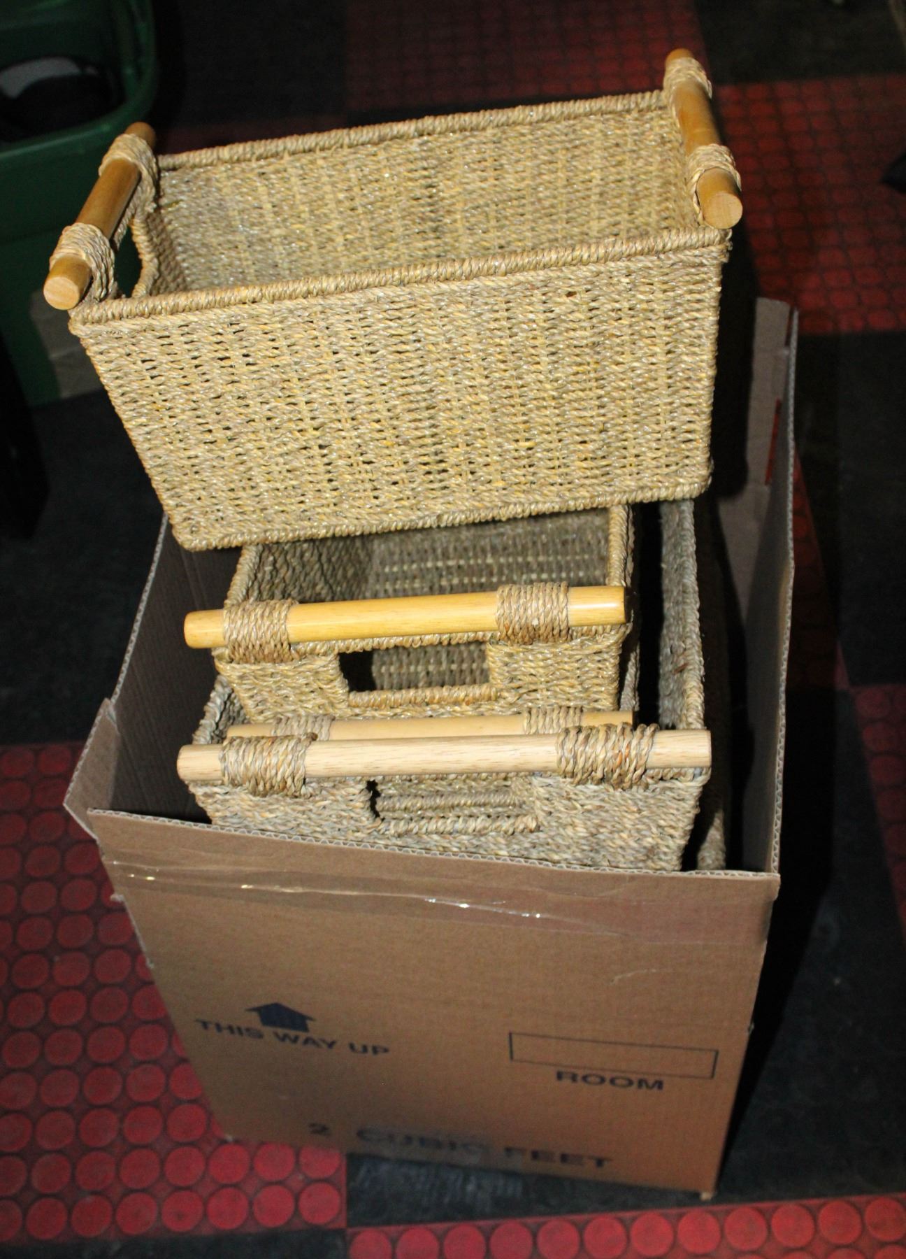 WICKER BASKETS- LOT OF 8 ASSORTED