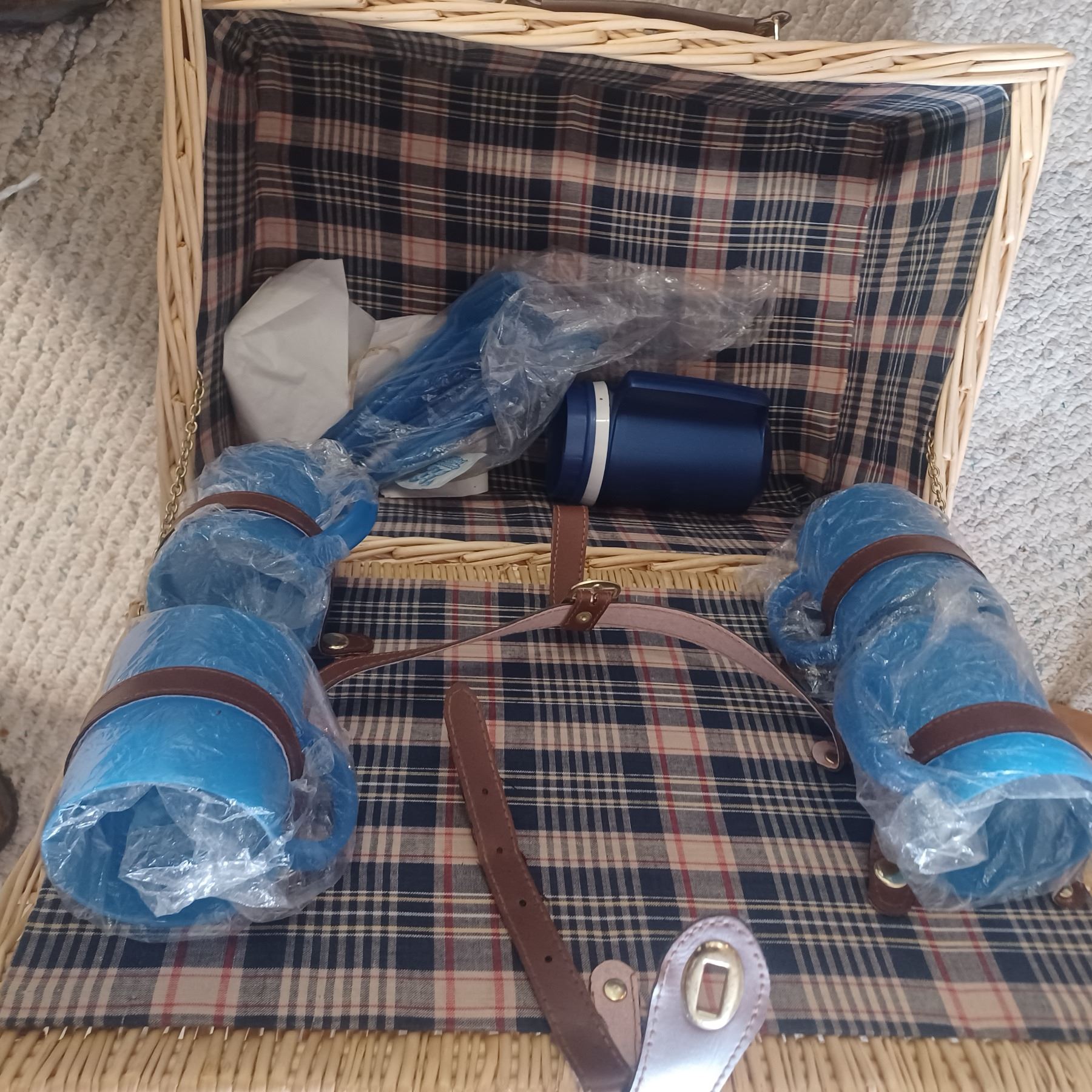WICKER PIC-NIC BASKET C/W SOME CONTENT