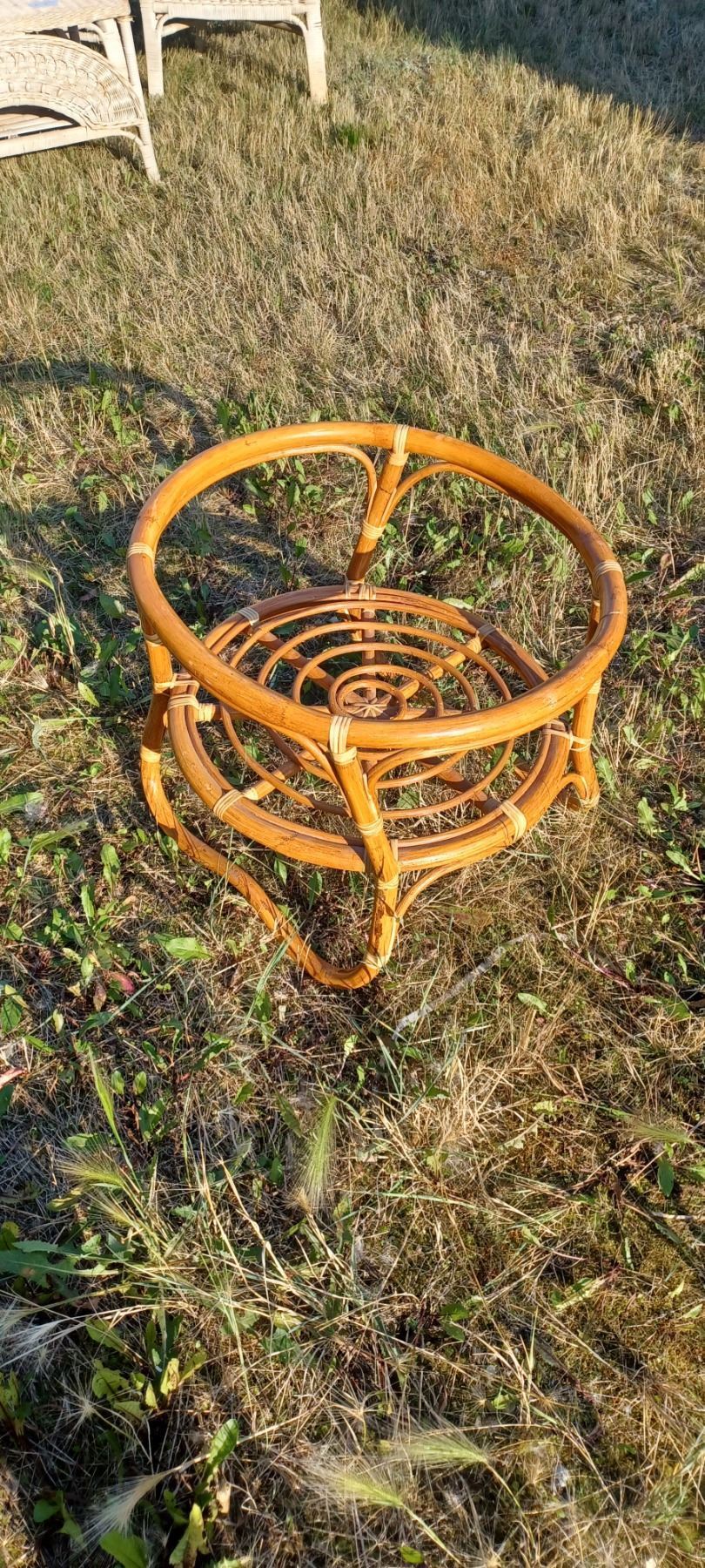WICKER PLANT, MAGAZINE STAND/SMALL COFFEE TABLE (NEEDS GLASS).
