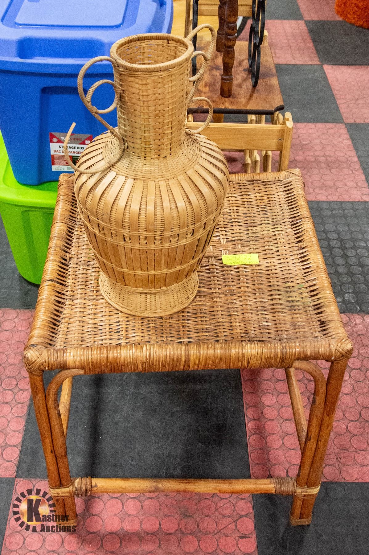 WICKER/RATTAN SIDE TABLE WITH WICKER/RATTAN VASE
