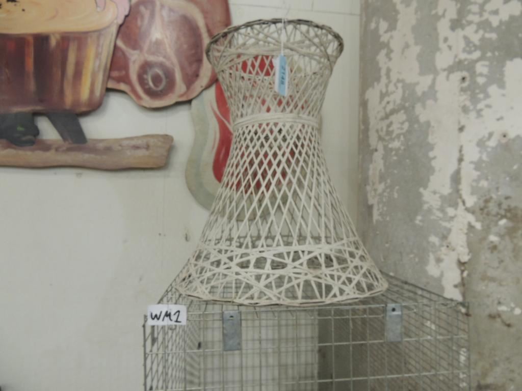 DECORATIVE WHITE WICKER PLANT STAND OR TABLE BASE VINTAGE AS SHOWN SEE PHOTO FOR MORE DETAILS.