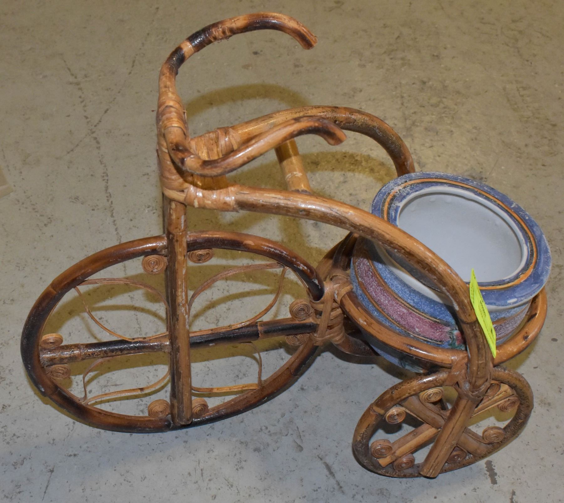 WICKER TRICYCLE WITH FLOWER POT