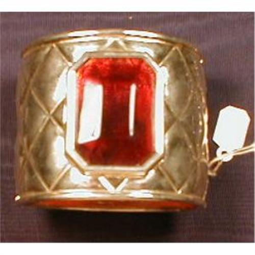 <tr><td>Title:WIDE Cuff Bracelet, GOLD Tone RED Stone VINTAGE</td></tr>