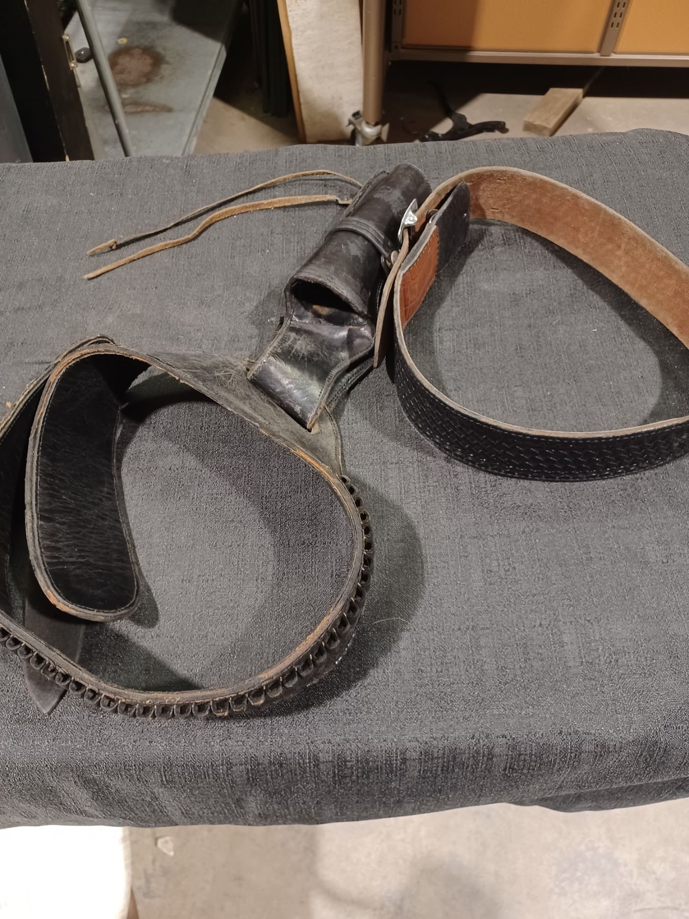 WIDE LEATHER AMMO BELT SIZE 34 AMMO BELT FITS 38/45 AND 2 LEATHER BELTS