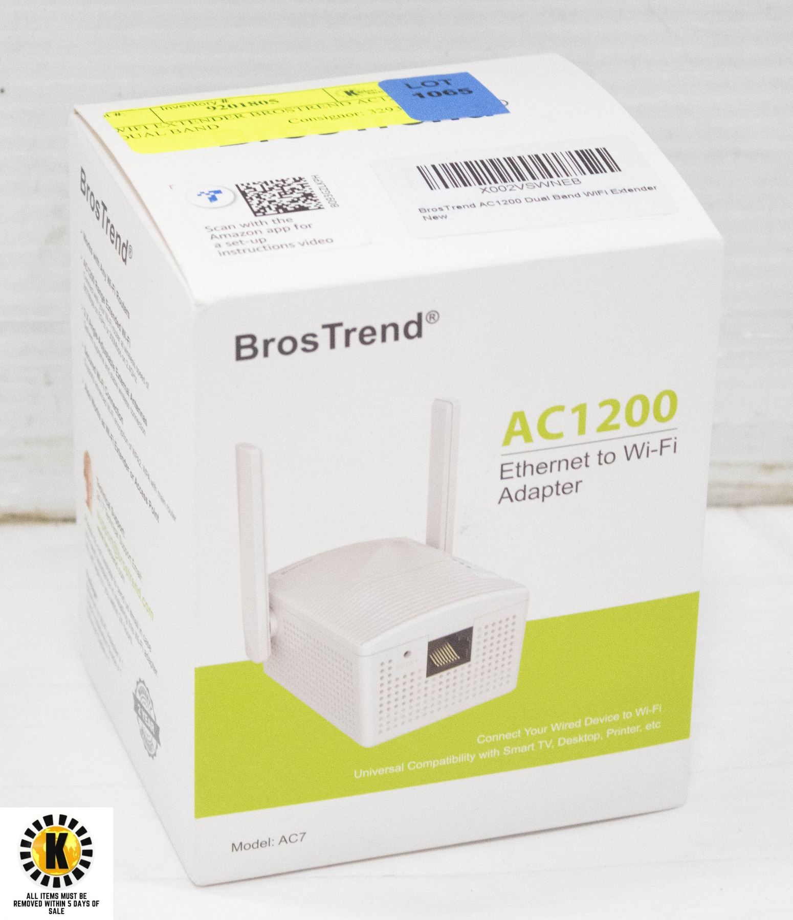 ETHERNET TO WI-FI ADAPTER WIRELESS NEW IN BOX **ALL ITEMS MUST BE REMOVED BY 5PM SATURDAY, AUGUST 26TH 2023. ALL REMAINING ITEMS WILL BE SUBJECT TO A $6.00 PER DAY STORAGE CHARGE. ANY ITEMS REMAINING AFTER MONDAY, SEPTEMBER 11TH, 2023 WILL BE CONSIDERED FORFEITED. NO REFUNDS WILL BE ISSUED FOR FORFEITED ITEMS. TO SCHEDULE A PICK UP APPOINTMENT CLICK HERE