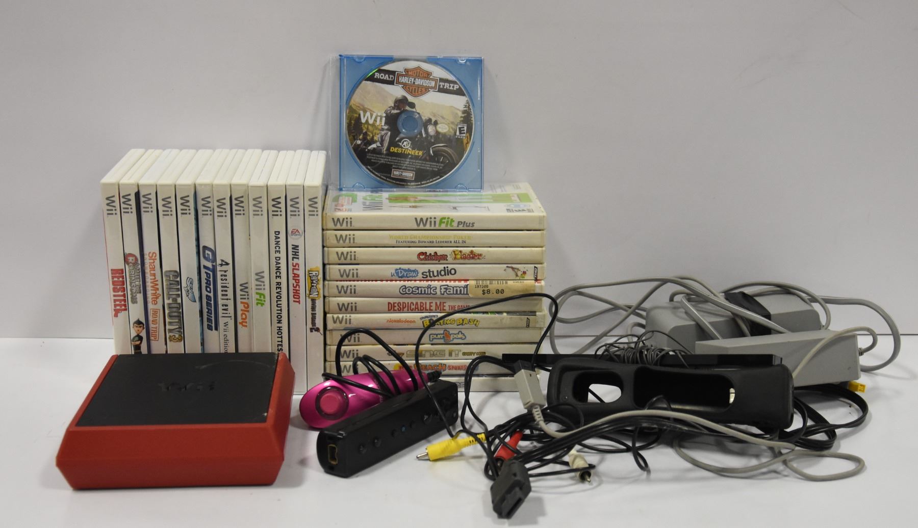 WII CONSOLE CABLES AND LOT OF GAMES