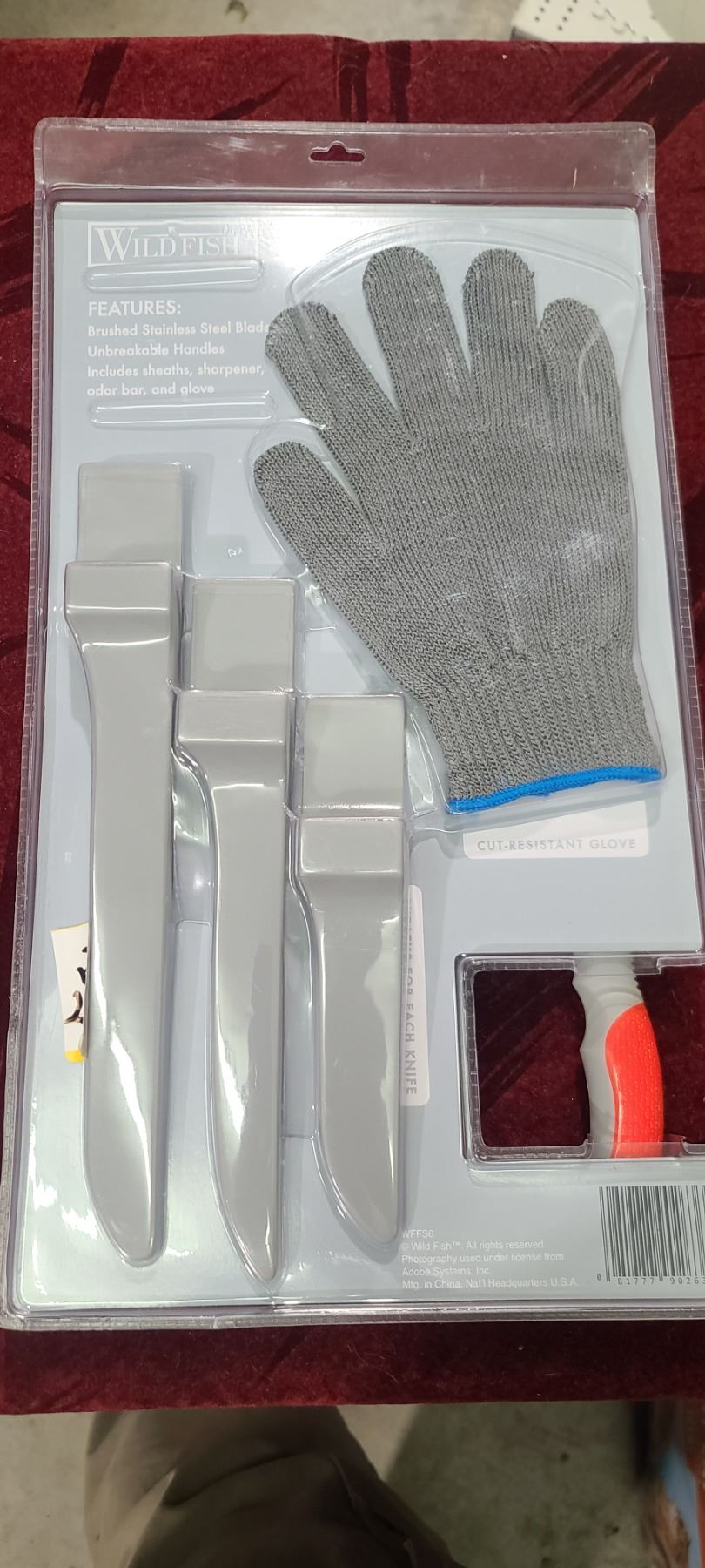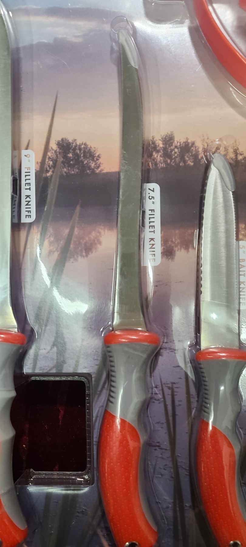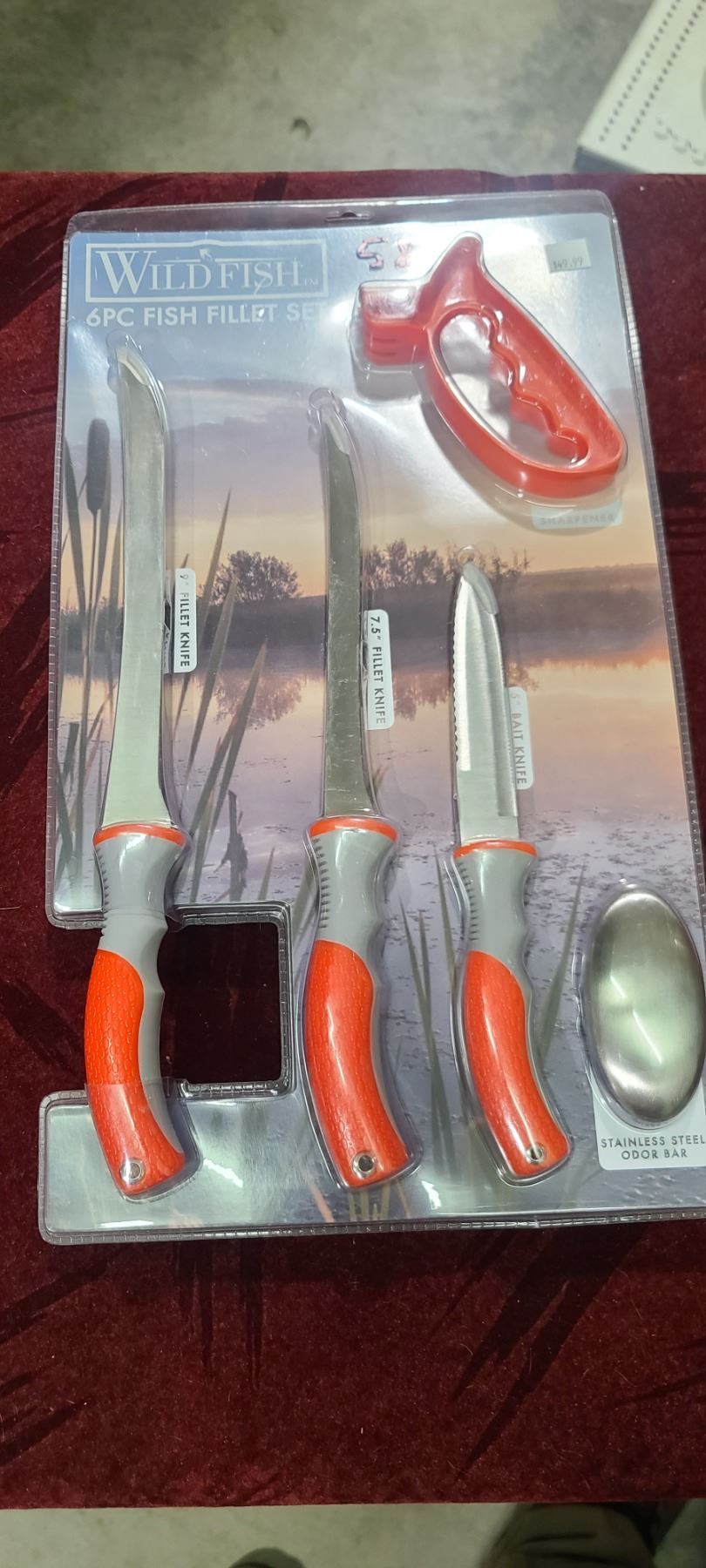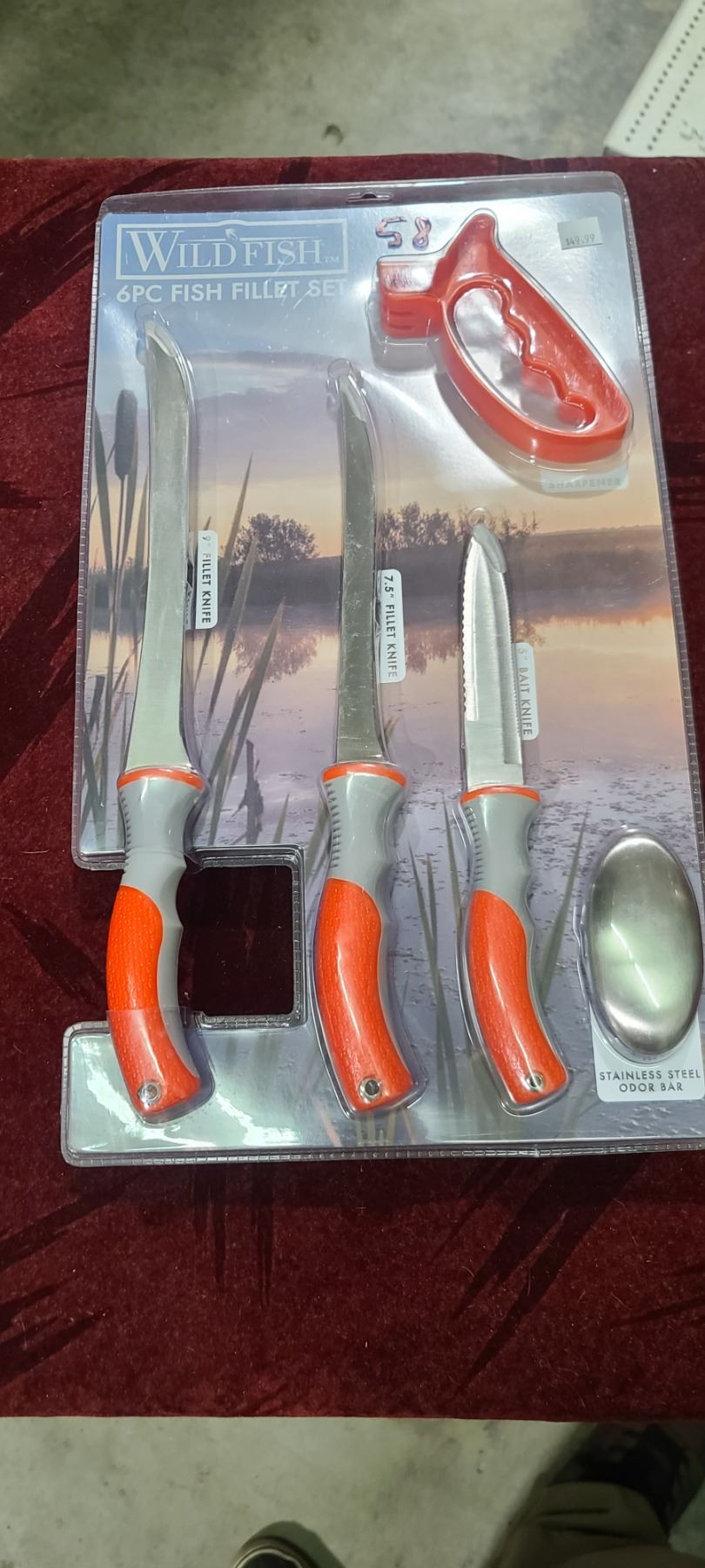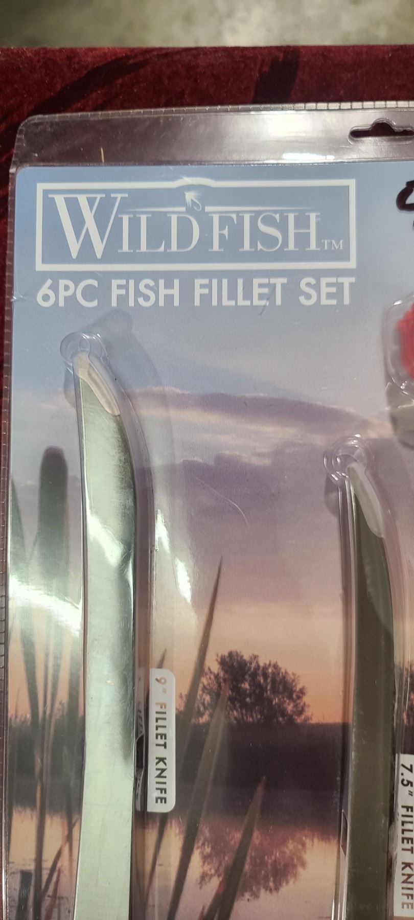 WILDFISH 6 PC FISH FILLET SET C/W 5", 7 1/2" AND 9" FILLET KNIVES AND SHARPENER