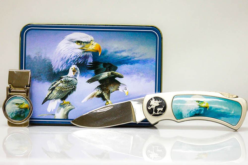 WILDLIFE STAINLESS STEEL EAGLE MONEY CLIP AND KNIFE **|**|** WILDLIFE STAINLESS STEEL EAGLE MONEY CLIP AND KNIFE