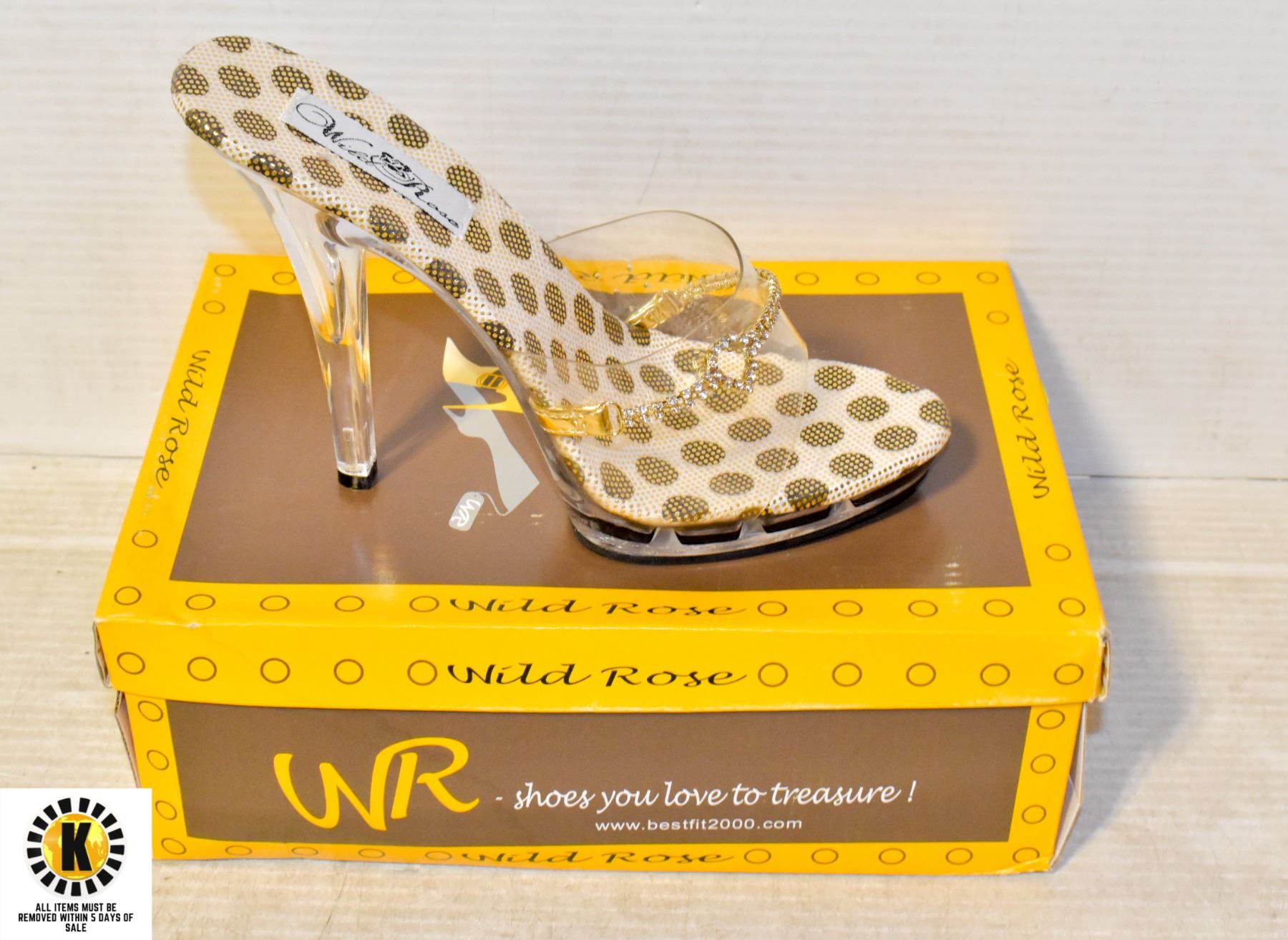 WILDROSE GOLD/CLEAR HEELS,SZ. 71/2