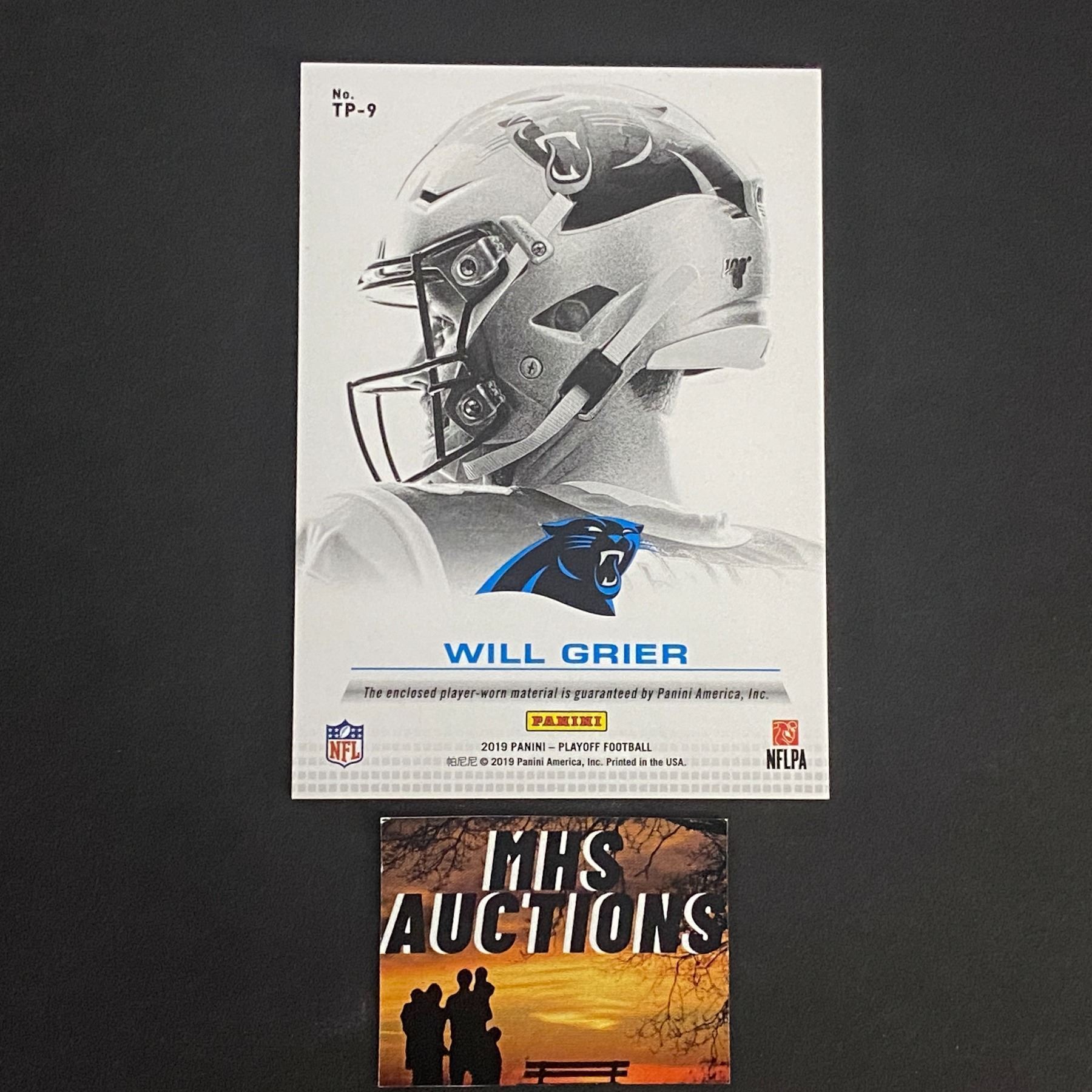 WILL GRIER PANTHERS 2019 PANINI PATCH CARD #27/50 ONLY 50 MADE IN THE WORLD!